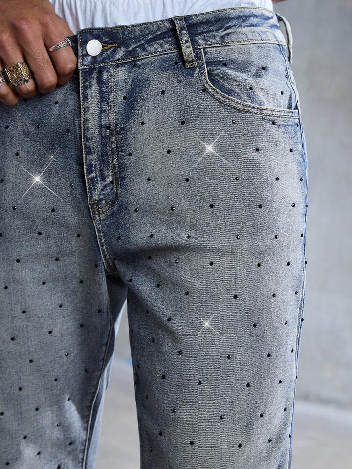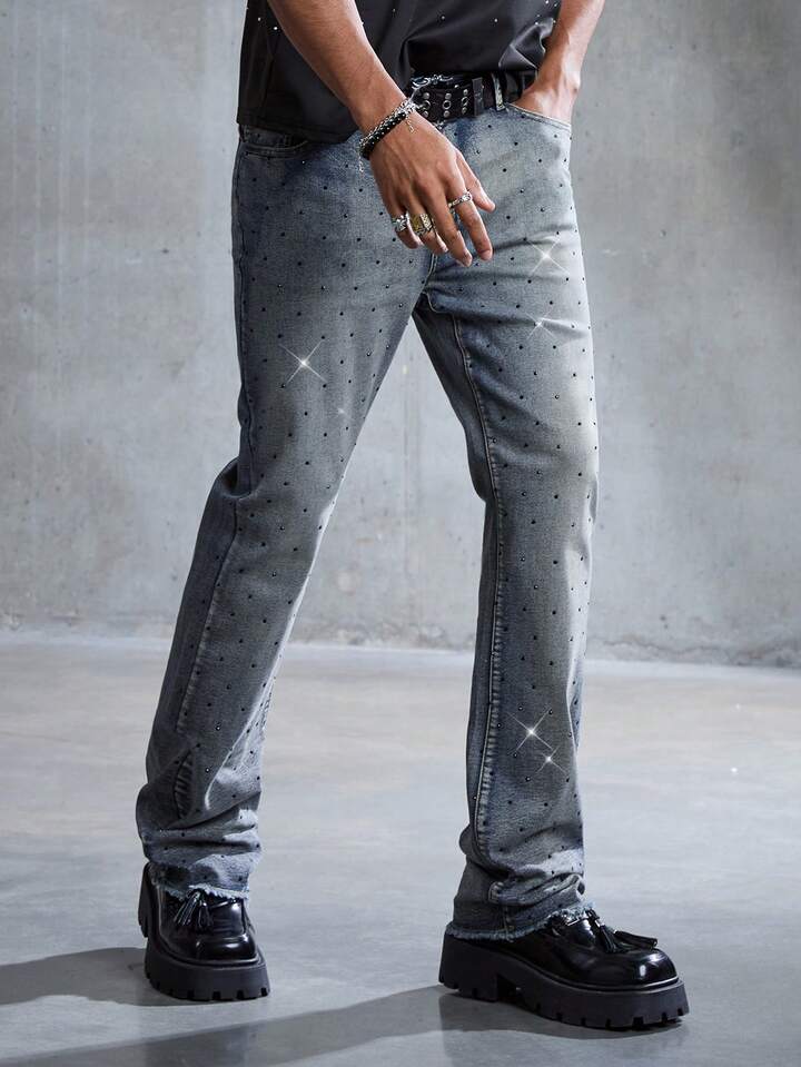 Street Life Men's Casual Fashion Street Low Waist Rhinestone Embellished Flare Jeans
