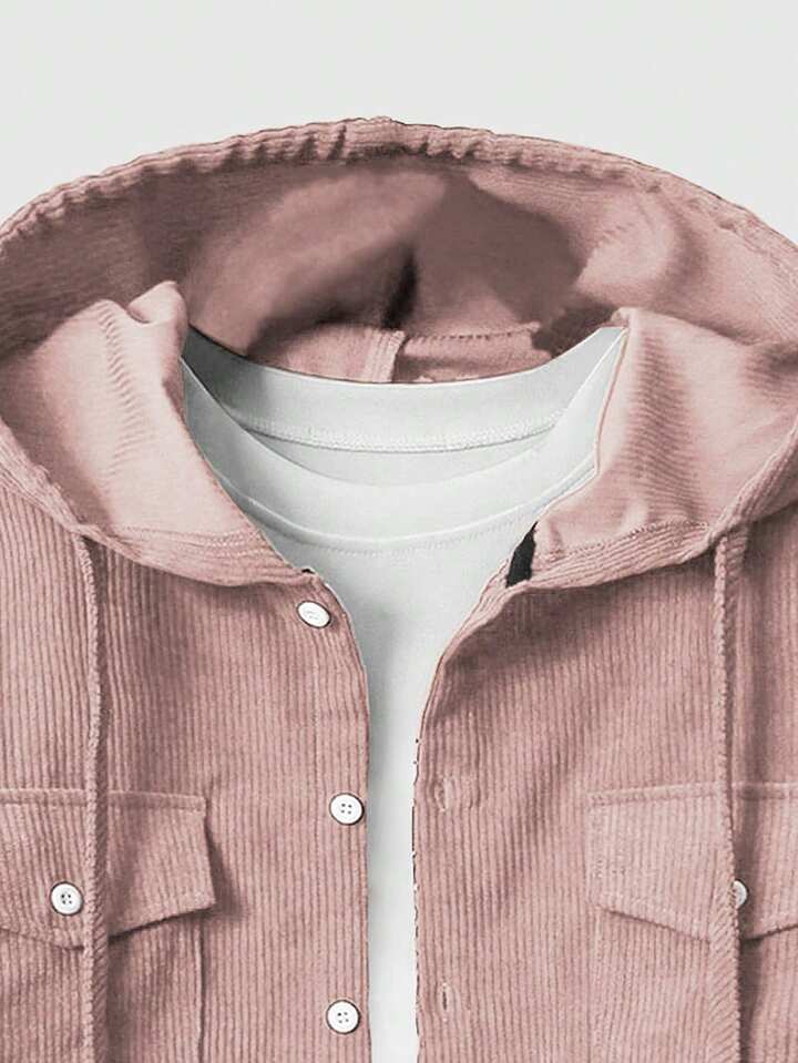 Street Life Men's Casual Front Button Drawstring Hooded Long Sleeve Shirt, Autumn