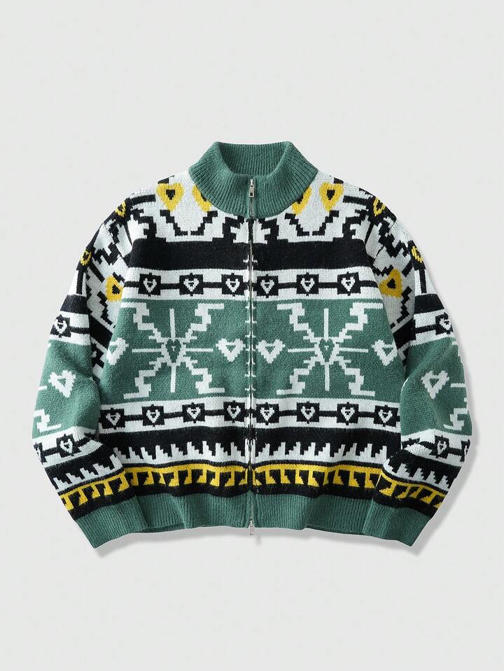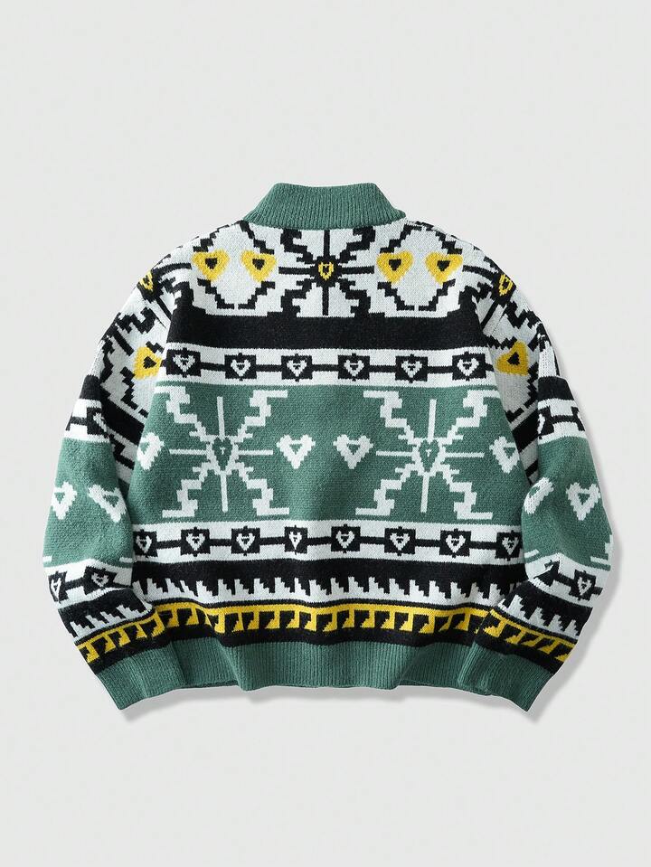 Street Life Men's Casual Geometric Pattern Zip-Up Sweater, Winter