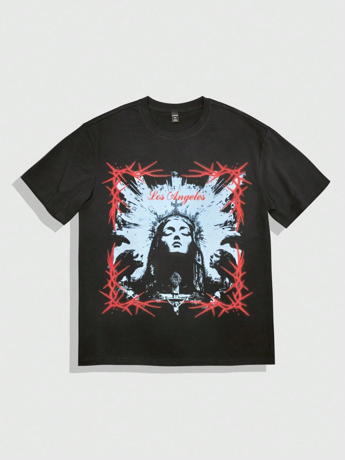 Street Life Men's Casual Letter & Figure Printed Round Neck Short Sleeve T-Shirt, Summer