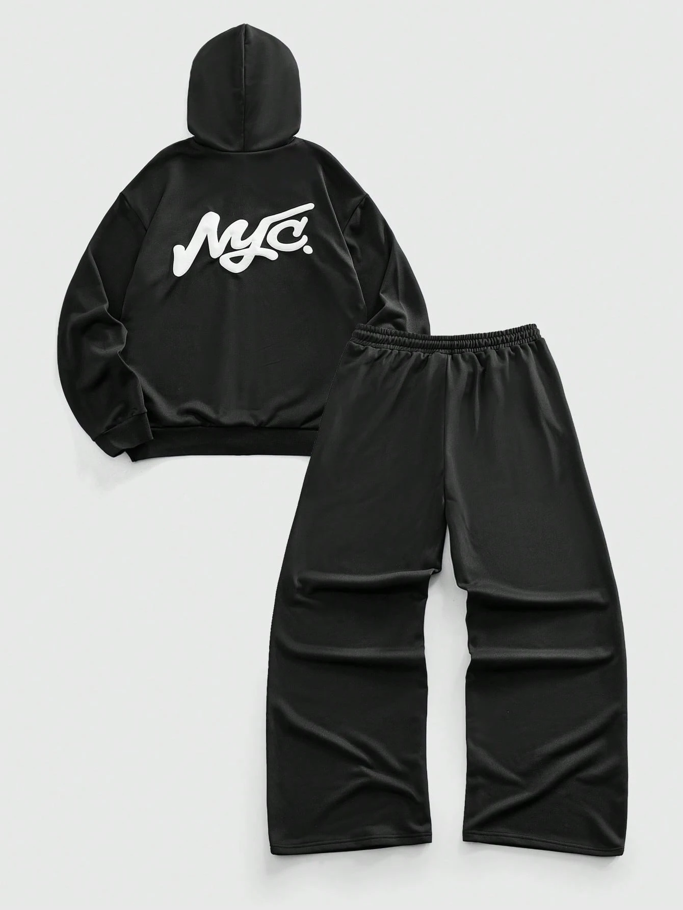 Street Life Men's Casual Letter Foil Print Hoodie Set