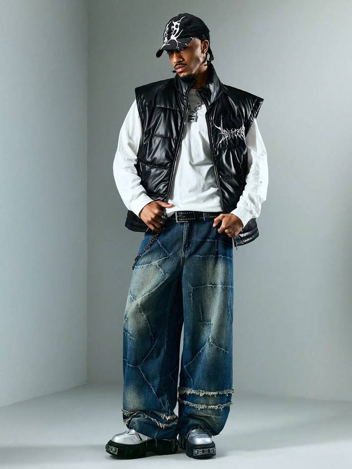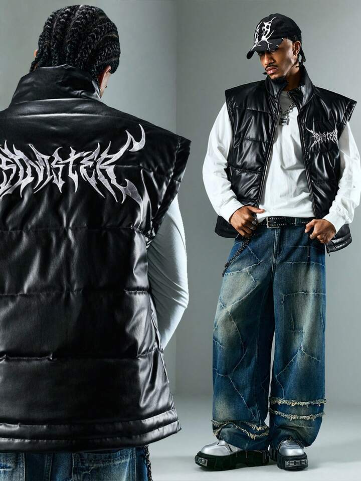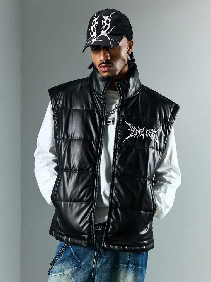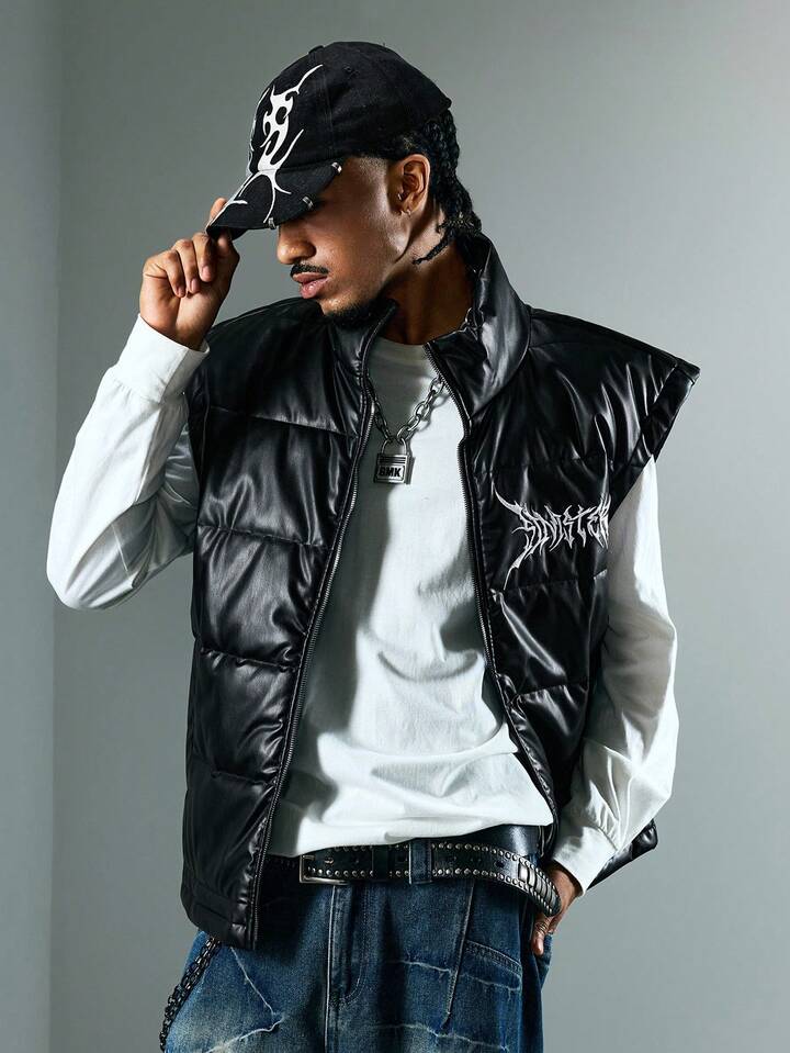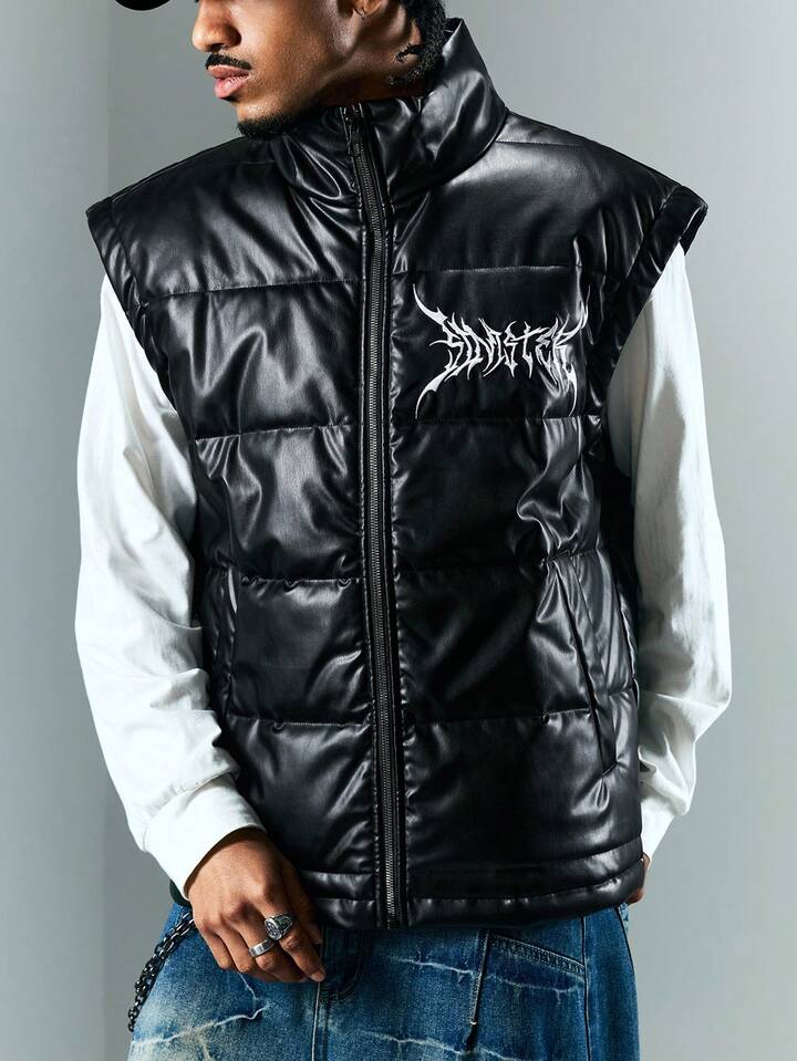 Street Life Men's Casual Letter Gothic Print Vest, Autumn/Winter