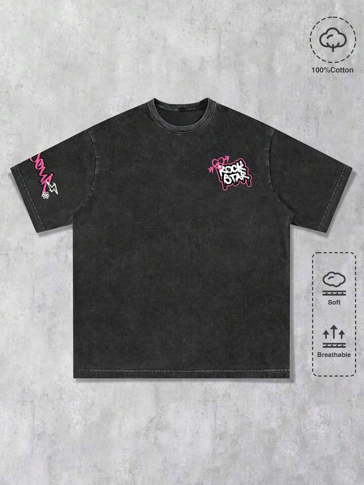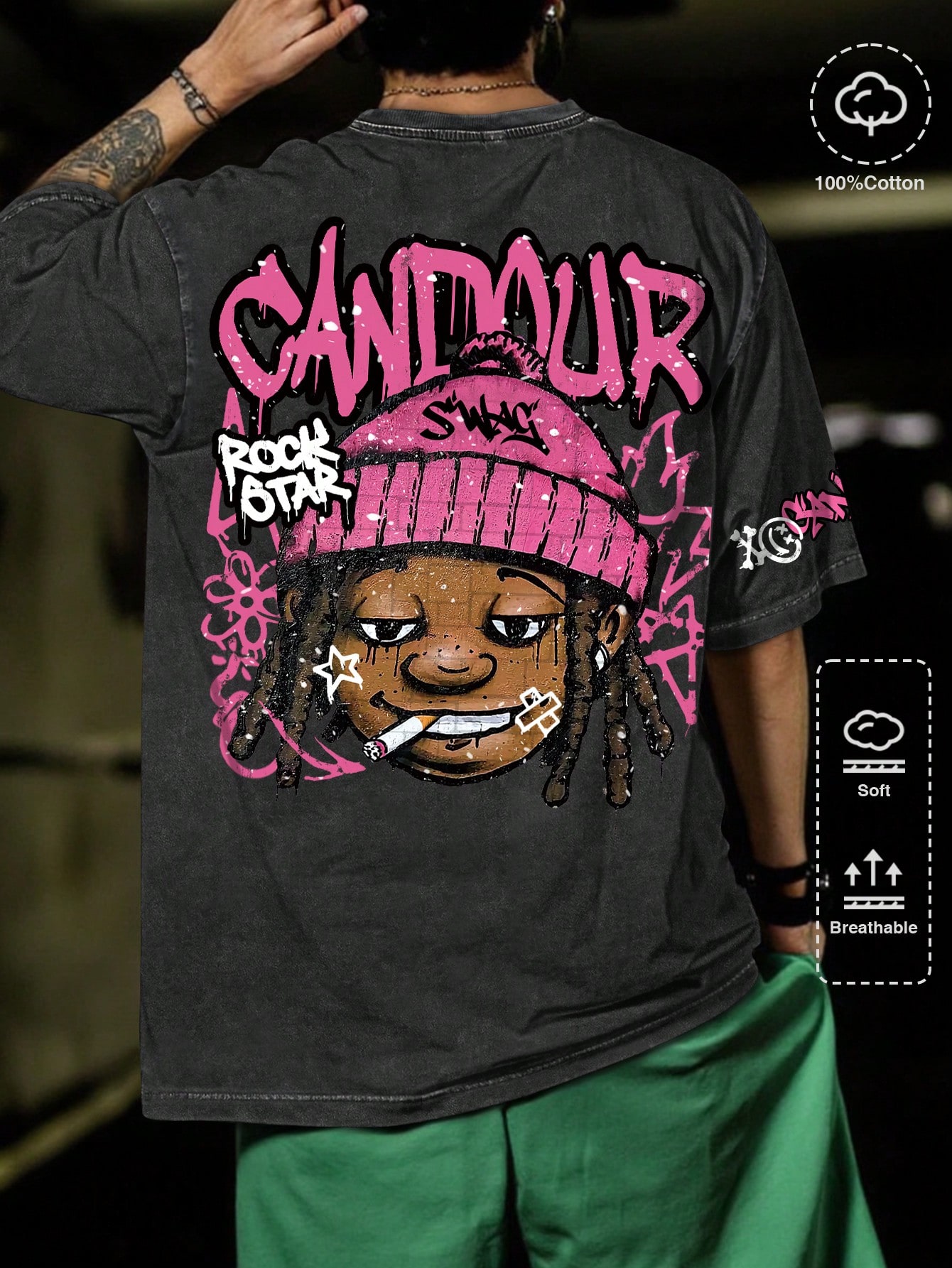 Street Life Men's Casual Letter & Hip Hop Cartoon Graphic Round Neck Short Sleeve T-Shirt, Summer