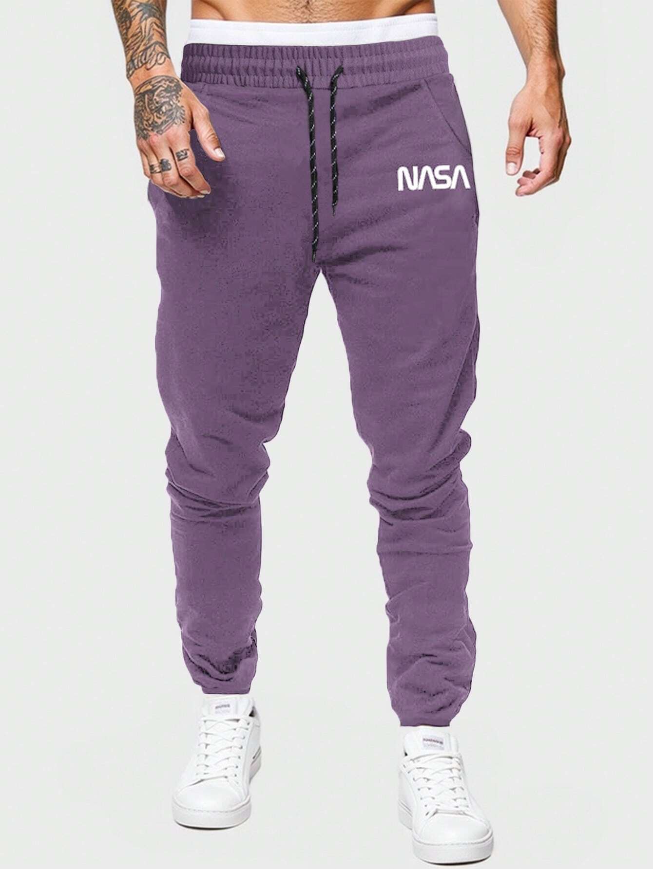 Street Life Men's Casual Letter Print Drawstring Waist Jogger Pants