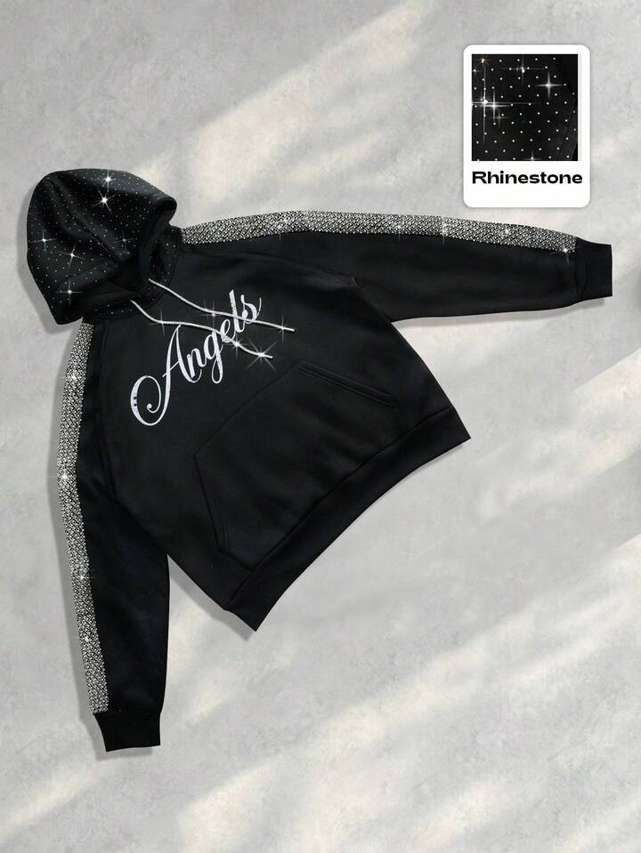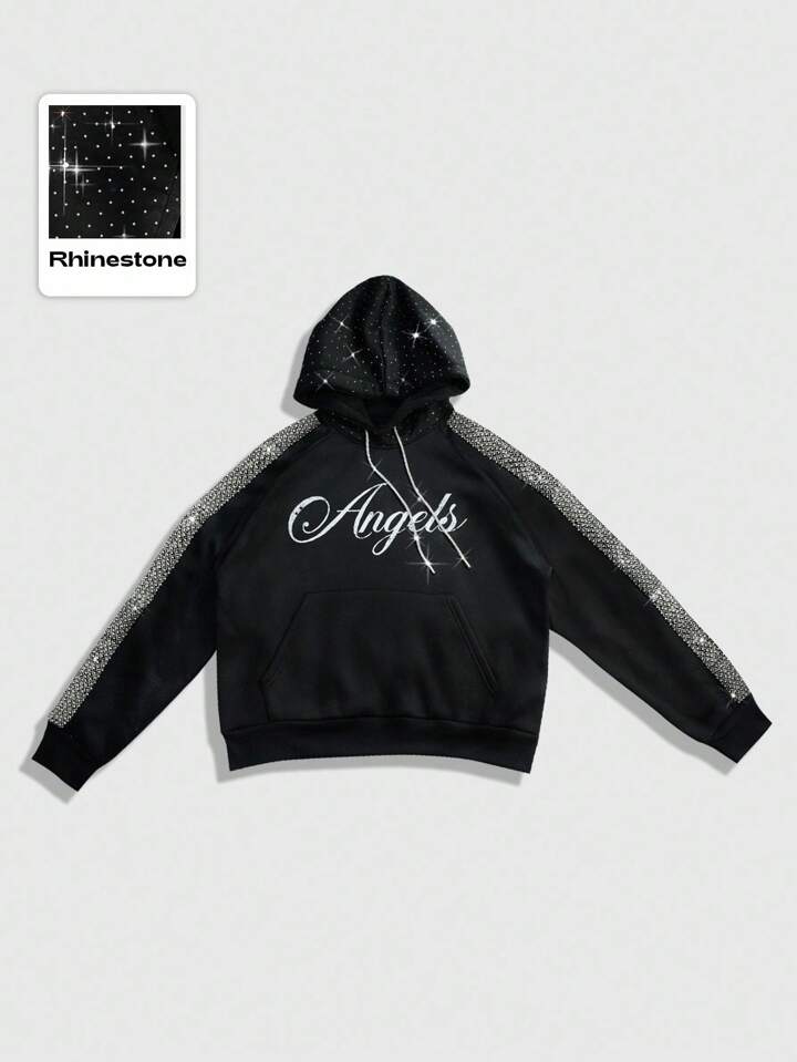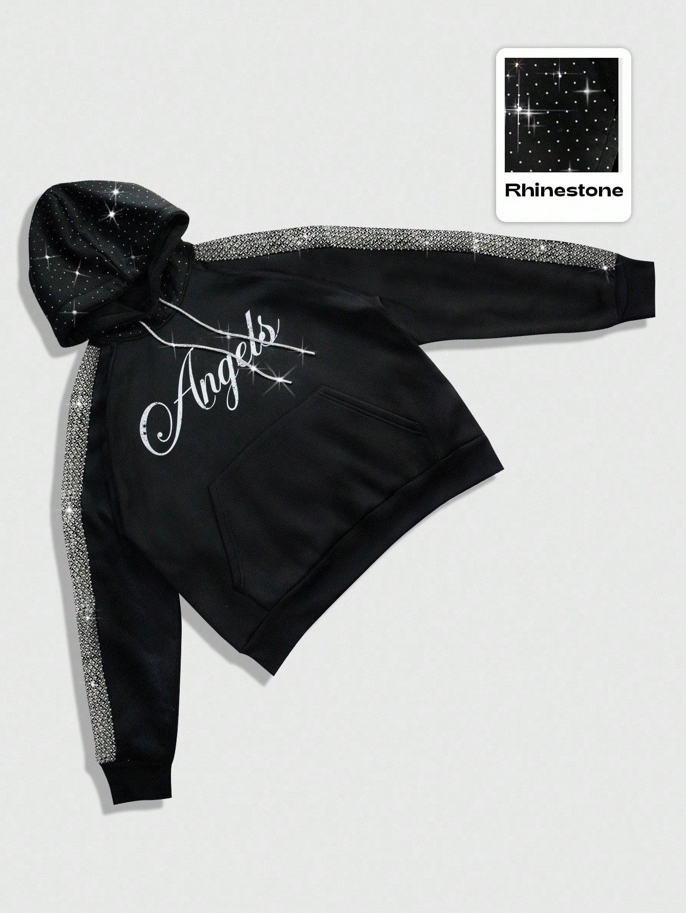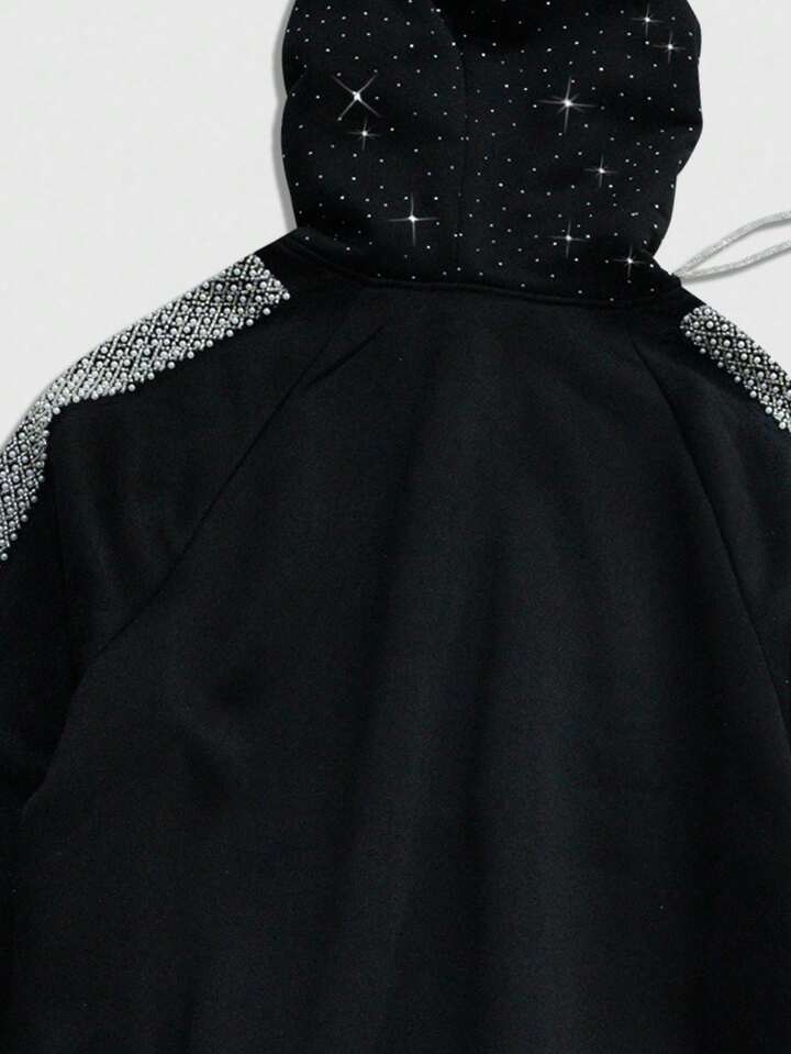 Street Life Men's Casual Minimalist Hoodie Sweatshirt With Rhinestone Trim