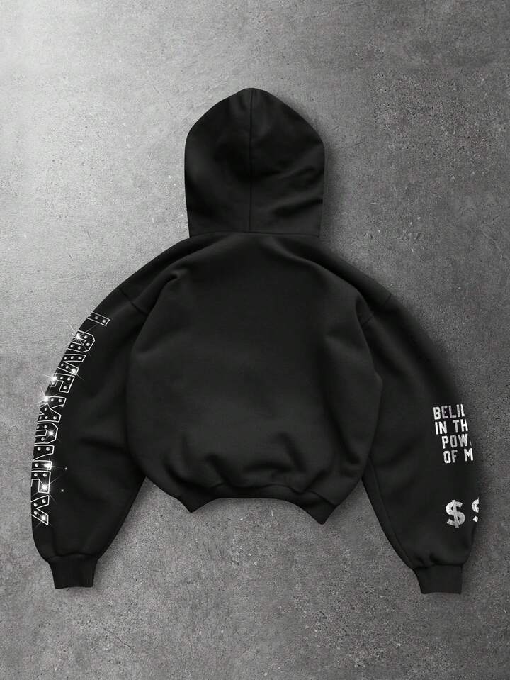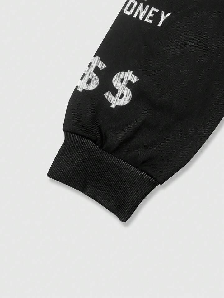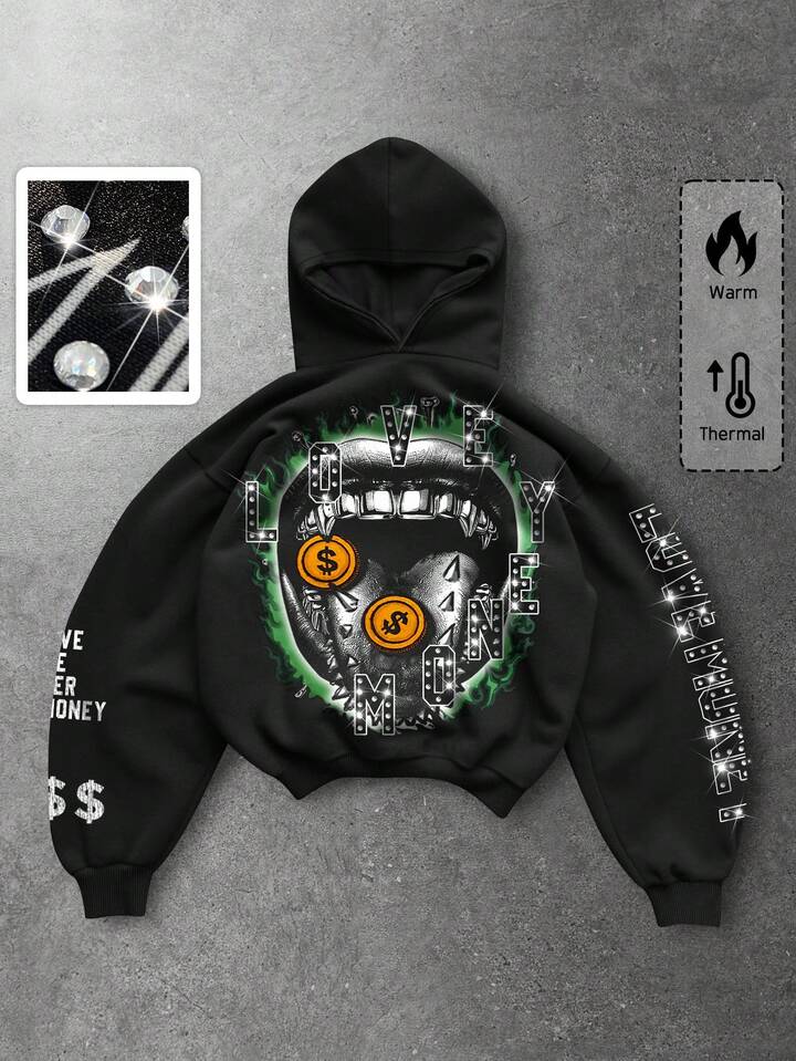 Street Life Men's Casual Mouth Letter Print Rhinestone Embellished Hoodie Sweatshirt, Autumn/Winter