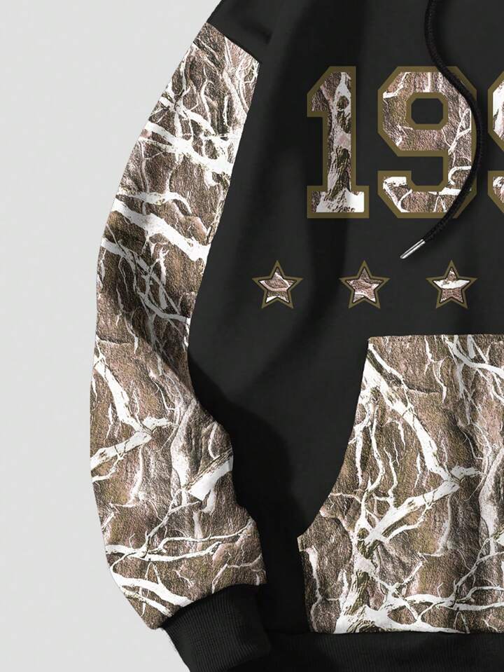 Street Life Men's Casual Patchwork Color Block Print Drawstring Hoodie, Autumn/Winter