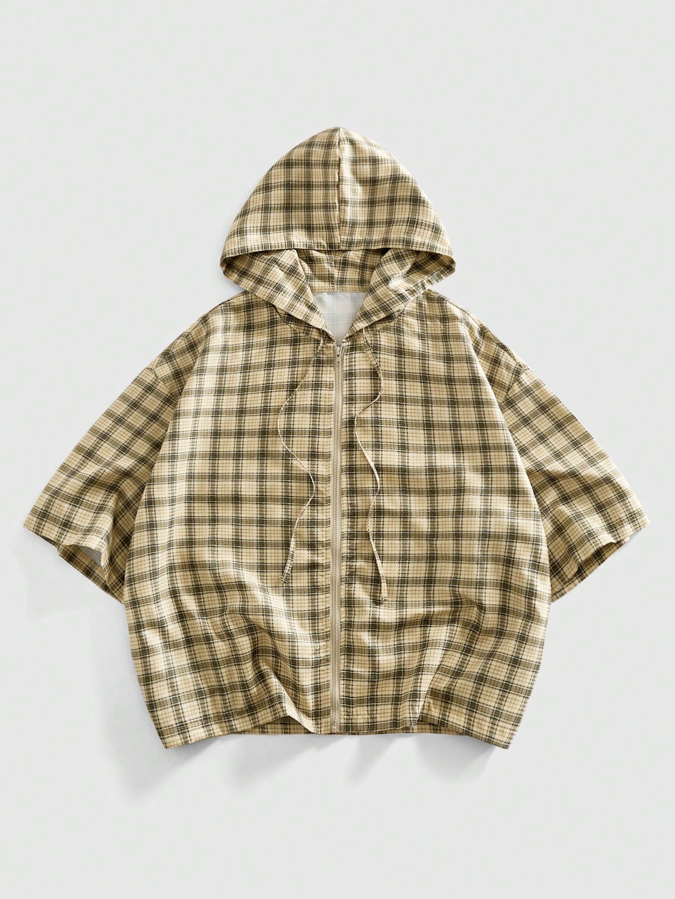 Street Life Men's Casual Retro Zip-Up Drawstring Hooded Short Sleeve Shirt, Summer
