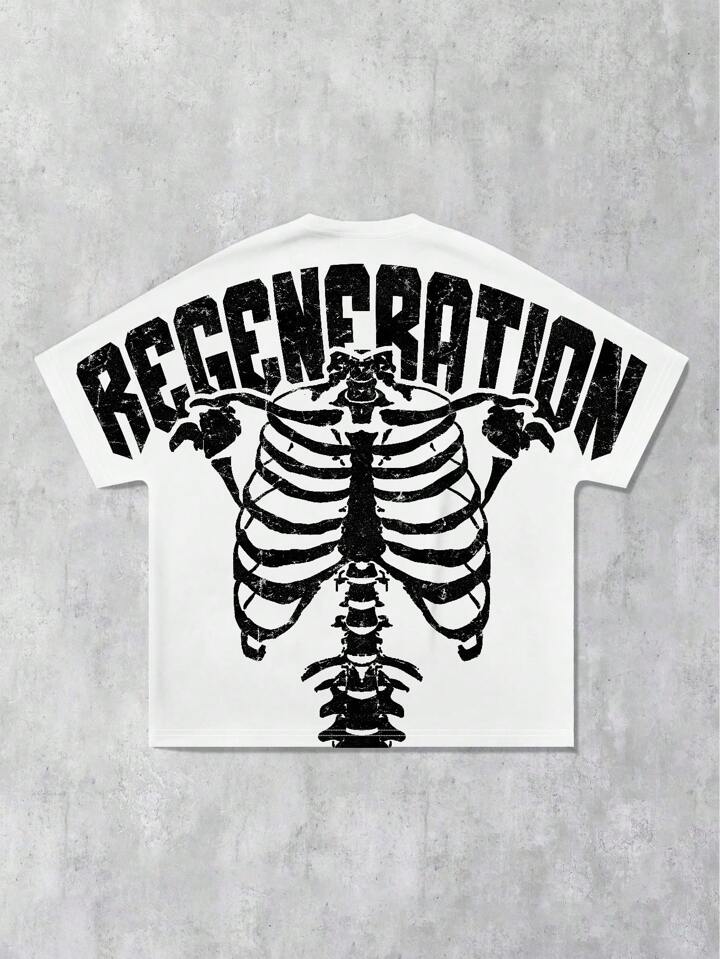 Street Life Men's Casual Skull And Letter Print Short Sleeve T-Shirt, Summer