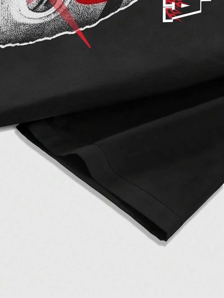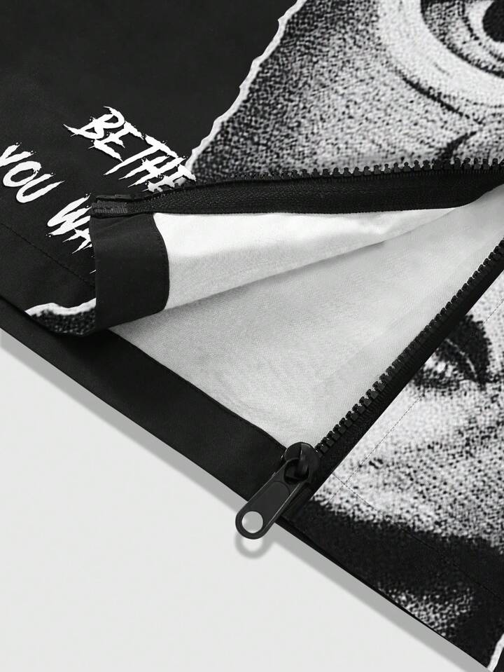 Street Life Men's Casual Slogan & Figure Printed Short Sleeve Zipper Front Shirt
