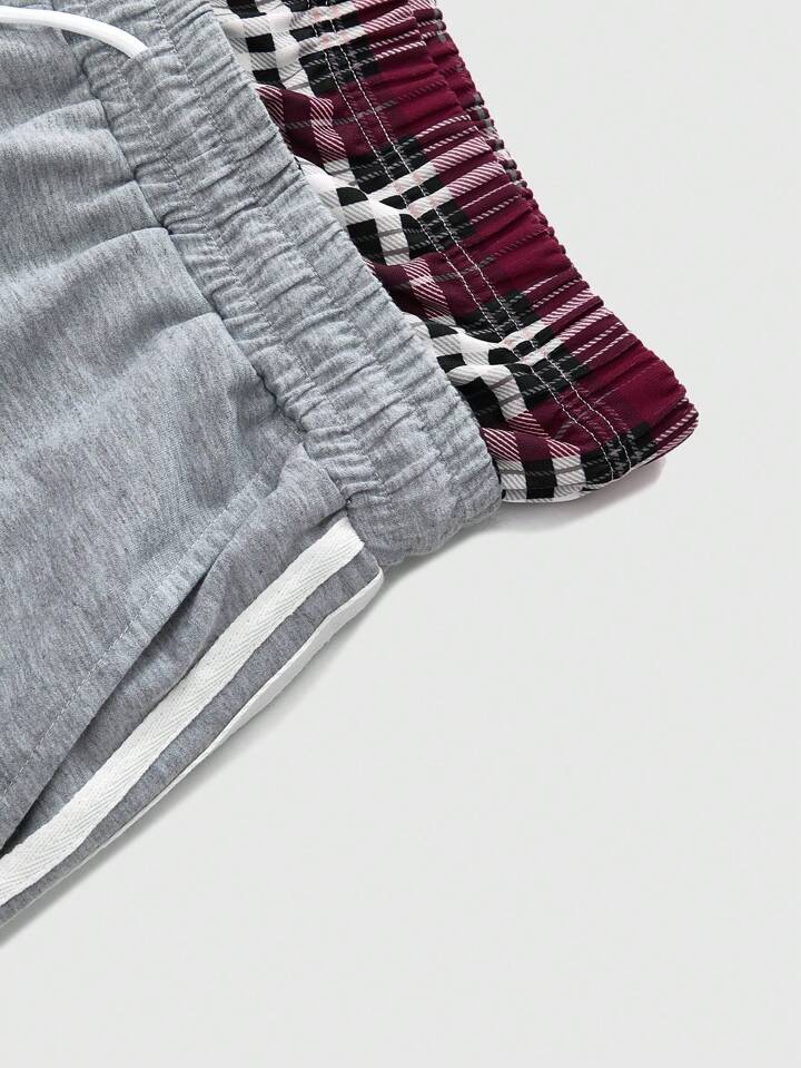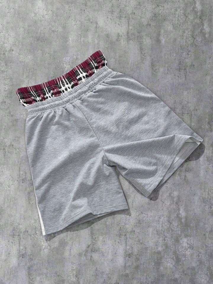 Street Life Men's Casual Sport Shorts,Gray Main Body With White Side Stripe, Red Black Plaid Waistband