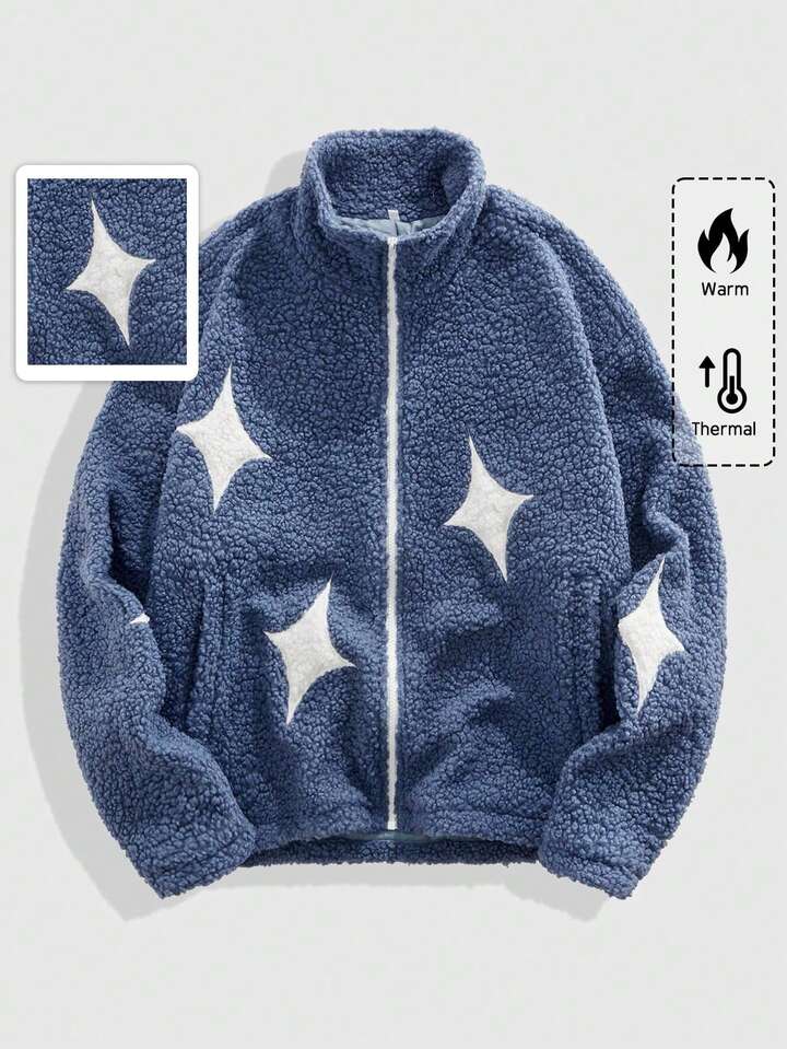 Street Life Men's Casual Star Embroidered Jacket, Autumn/Winter