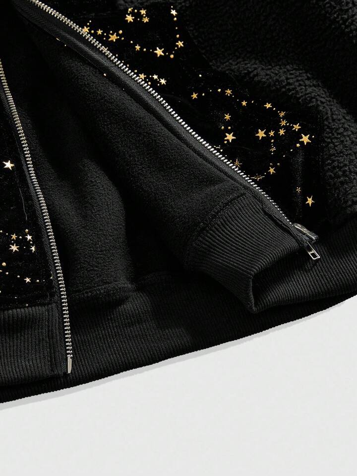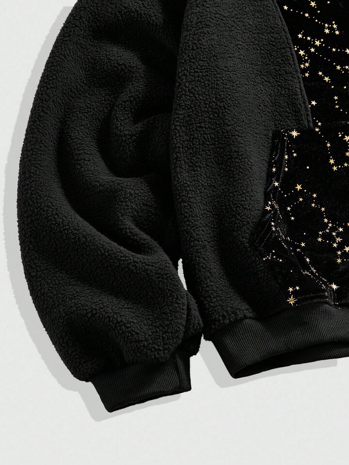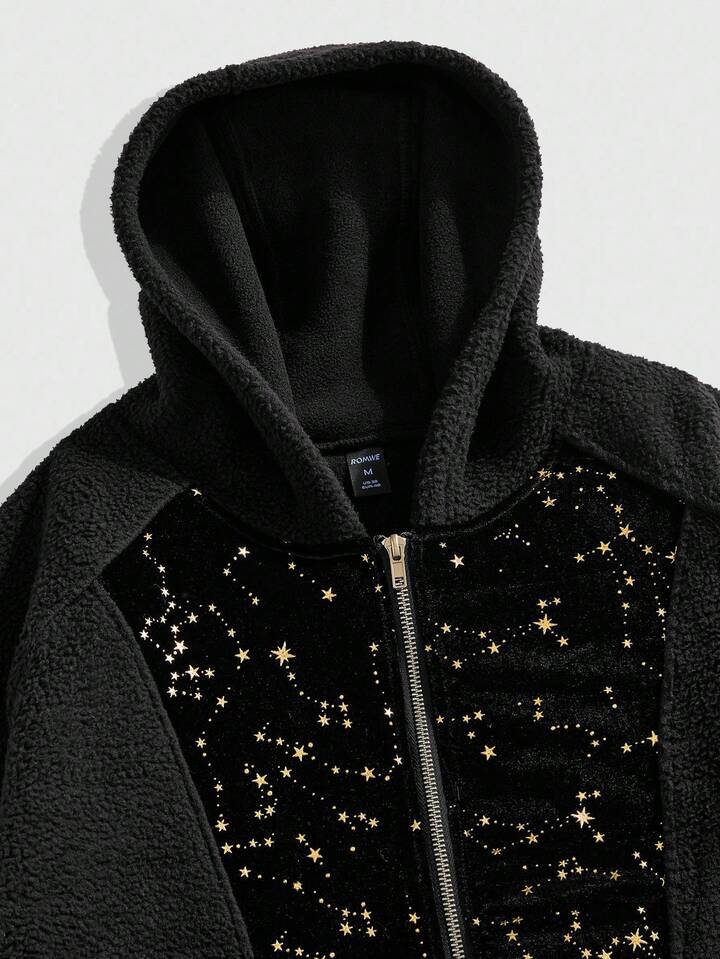 Street Life Men's Casual Star Print Patchwork Hoodie Street Sweatshirt, Autumn/Winter