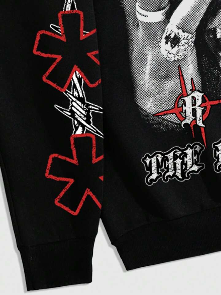 Street Life Men's Casual Street Figure Slogan Printed Hooded Sweatshirt, Autumn/Winter