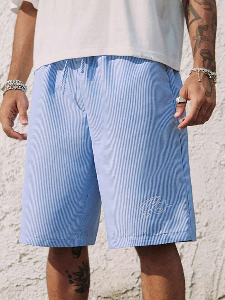 Street Life Men's Casual Striped Drawstring Waist Shorts, Summer Vacation