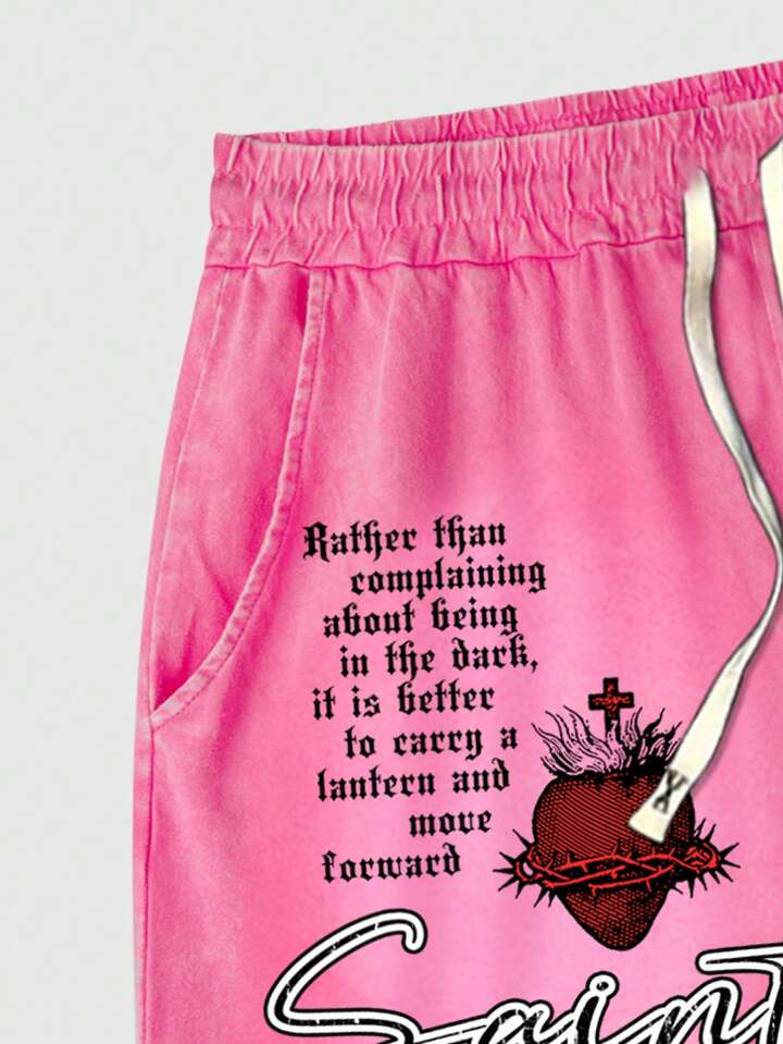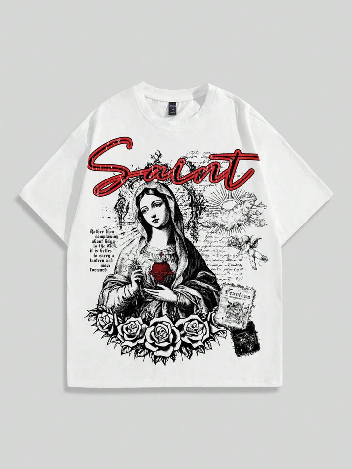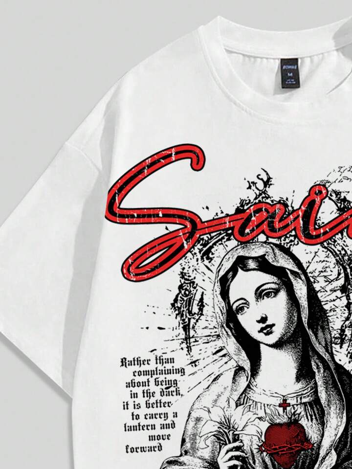 Street Life Men's Casual Summer Virgin Mary Slogan Print T-Shirt And Shorts Set
