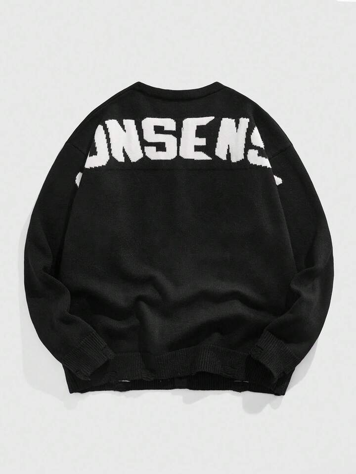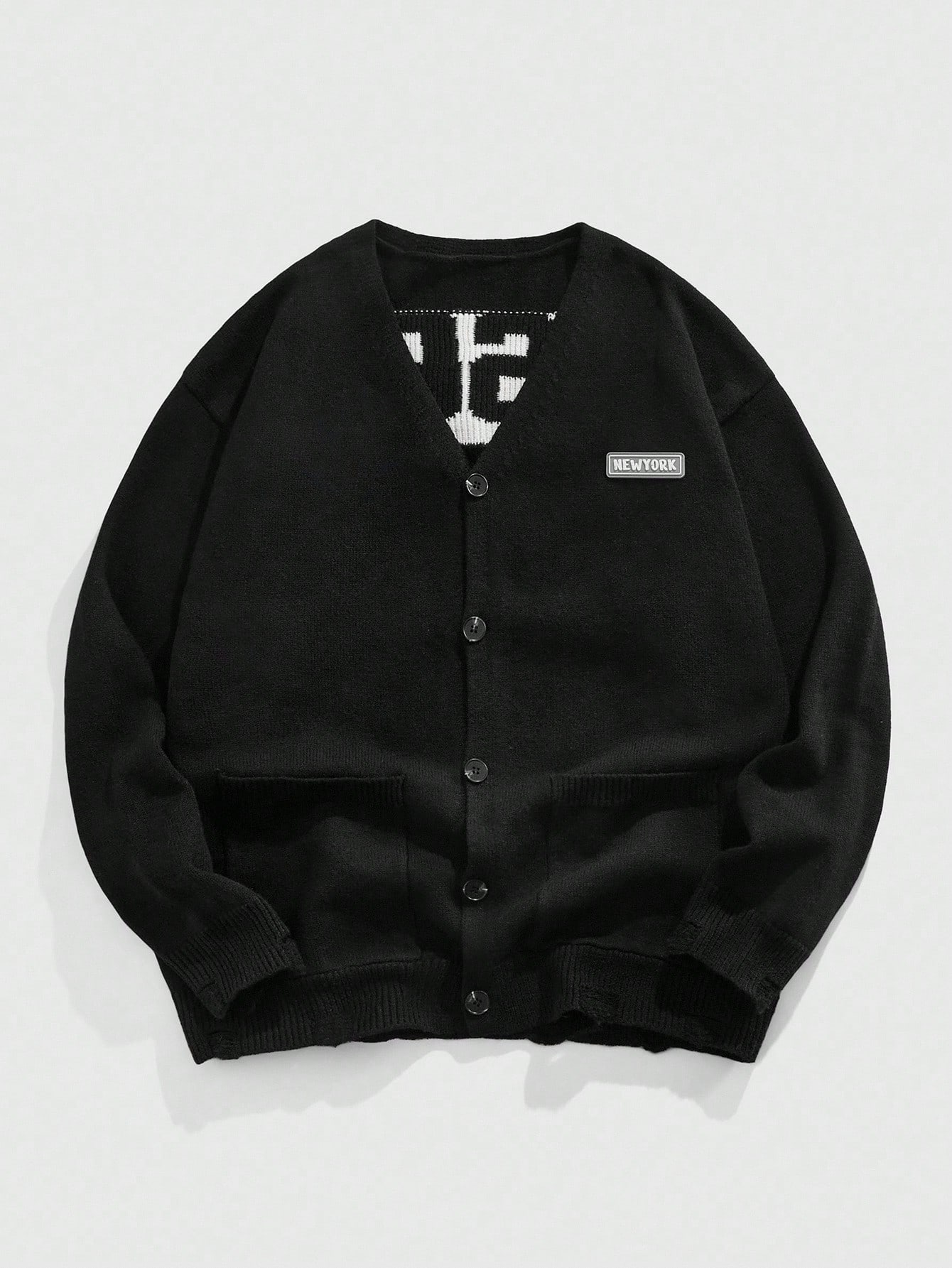 Street Life Men's Casual Versatile Letter Pattern Cardigan, Autumn/Winter, Grunge Style