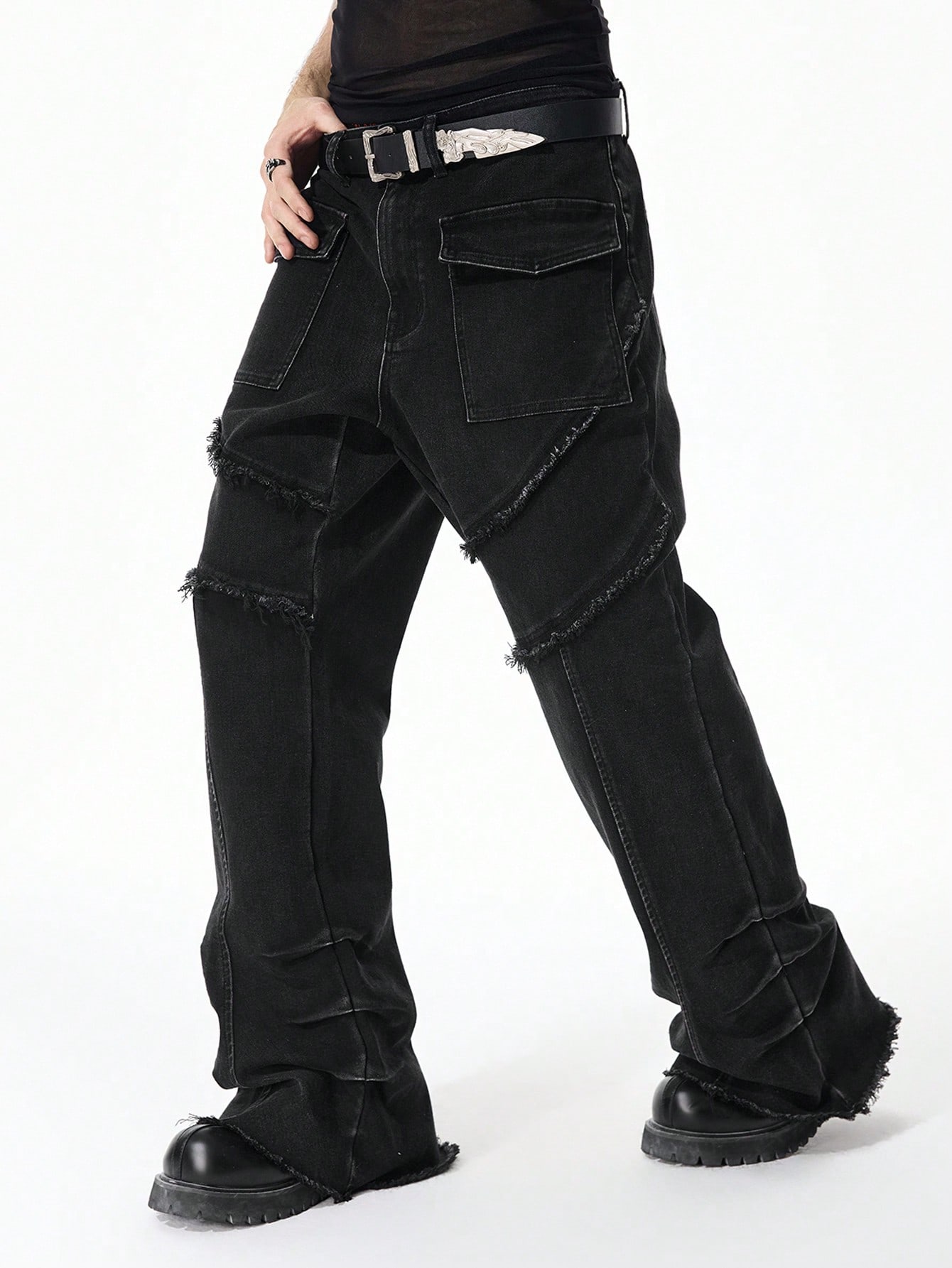 Street Life Men's Casual Washed Frayed Flared Jeans