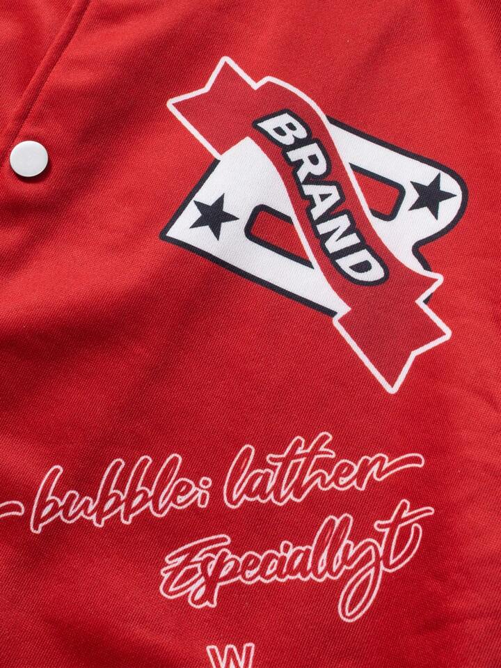 Street Life Men's Contrast Trim Front Button Cross & Letter Pattern Long Sleeve Pocket Casual Baseball Jacket