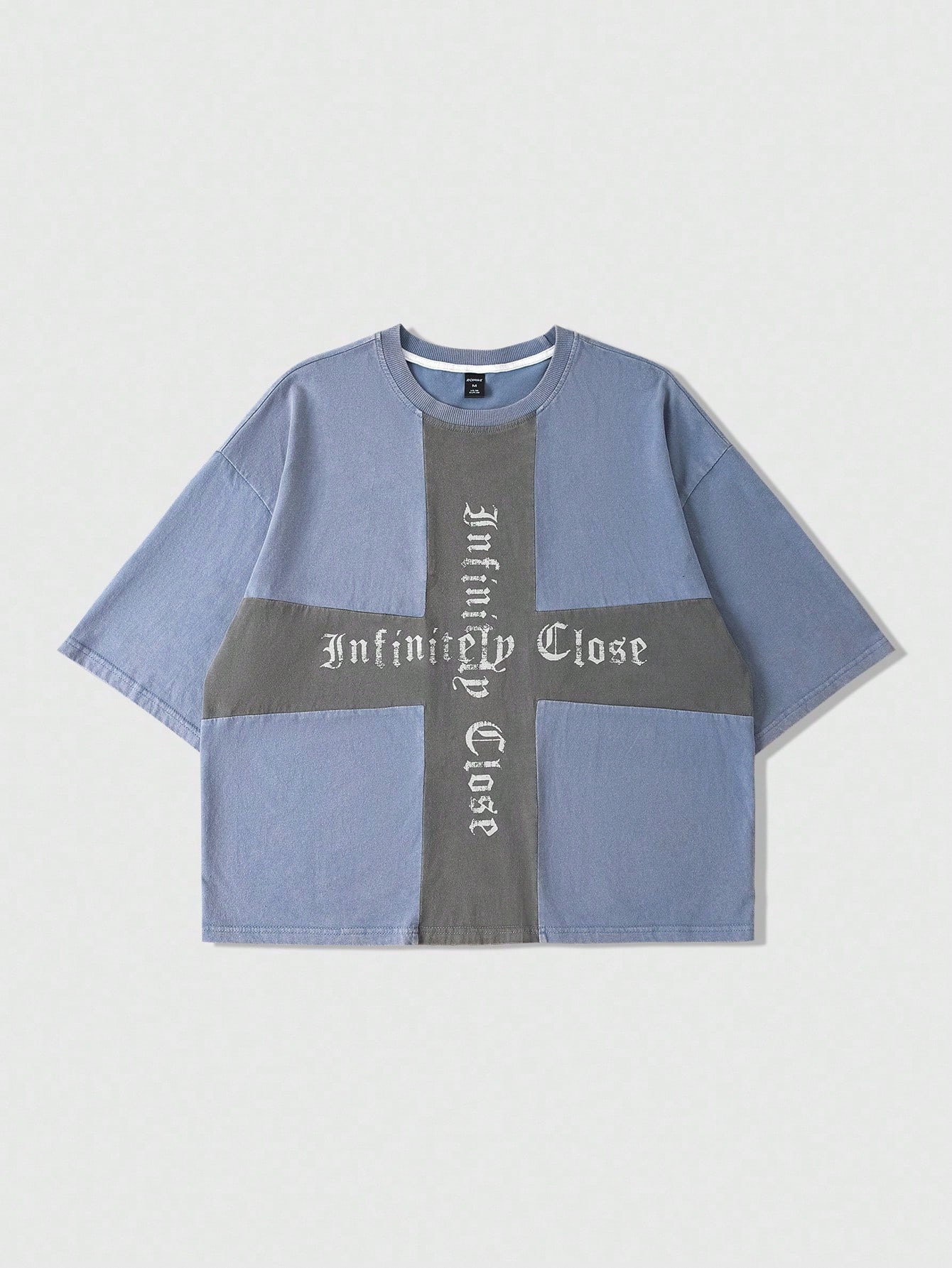 Street Life Men's Cross Patchwork Short Sleeve T-Shirt, Loose Cropped Fit