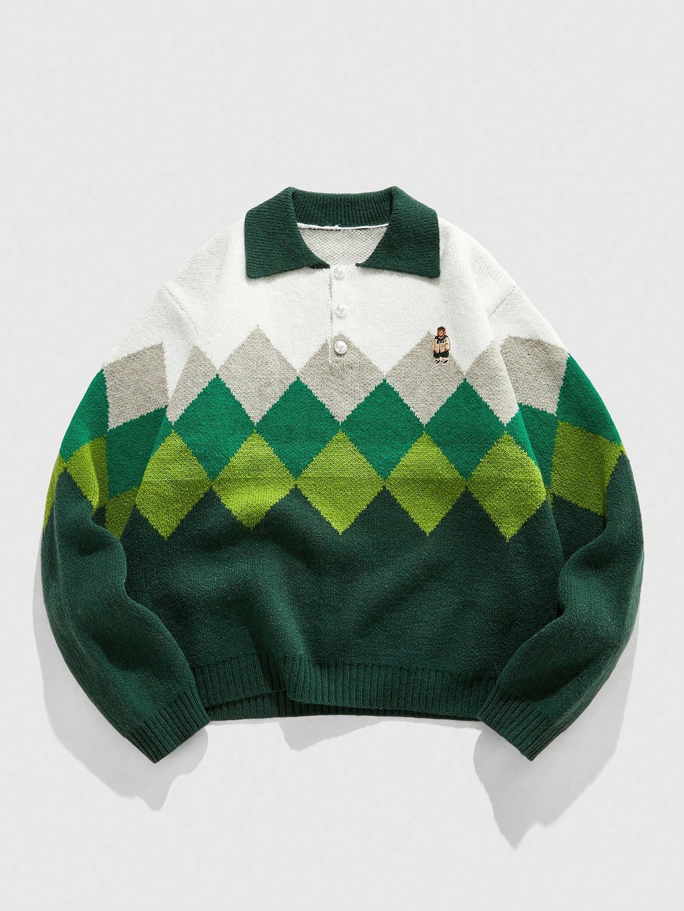 Street Life Men's Diamond Pattern Knitted Sweater With Turndown Collar