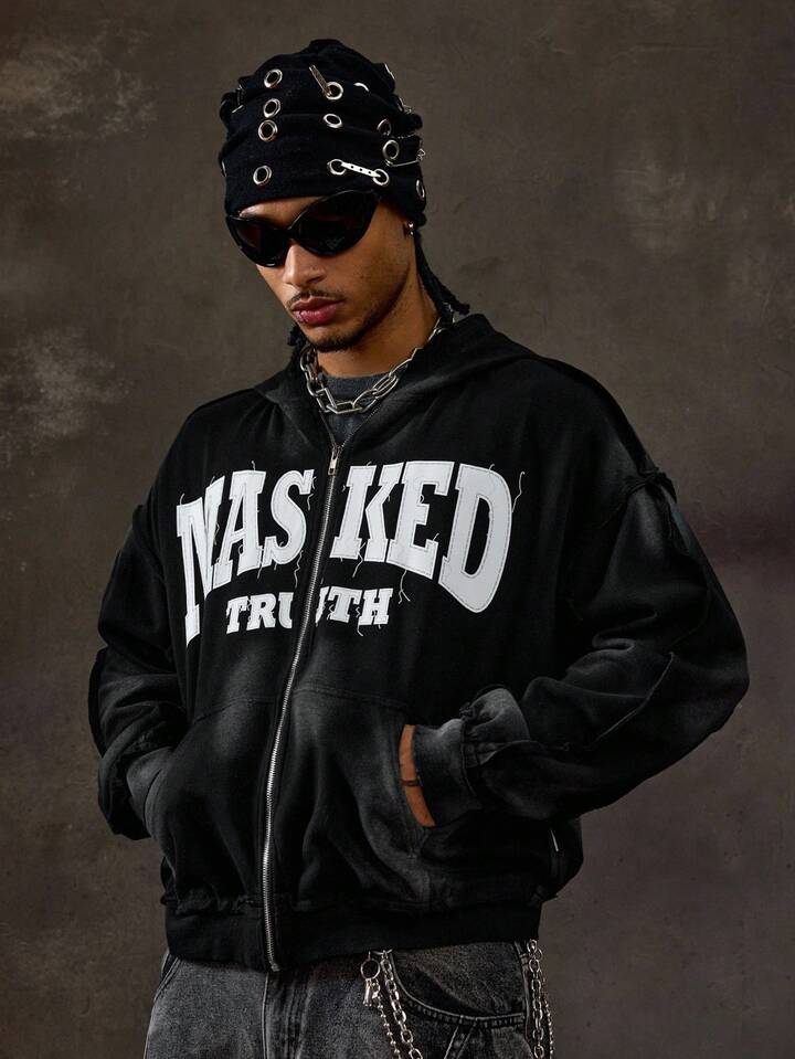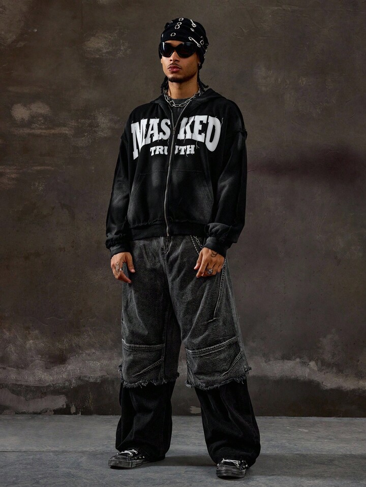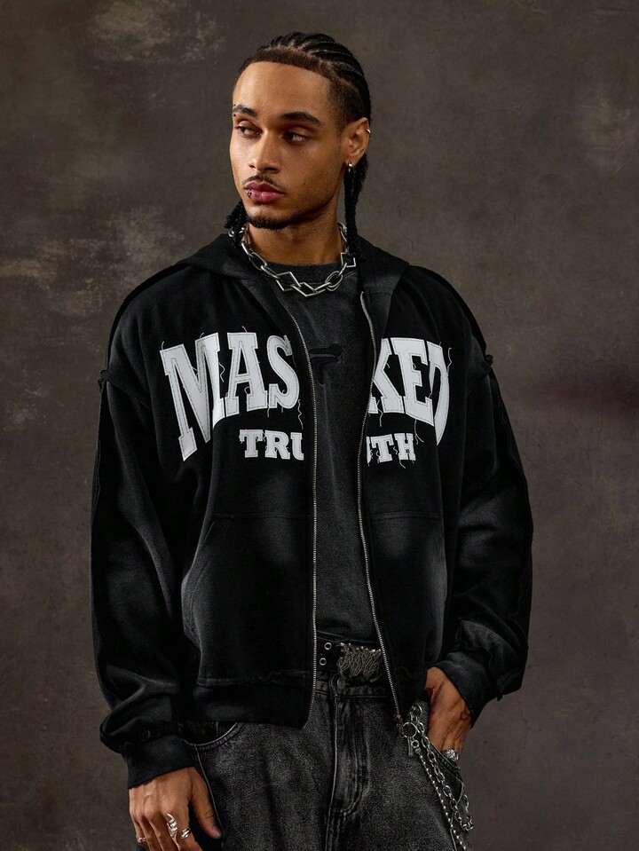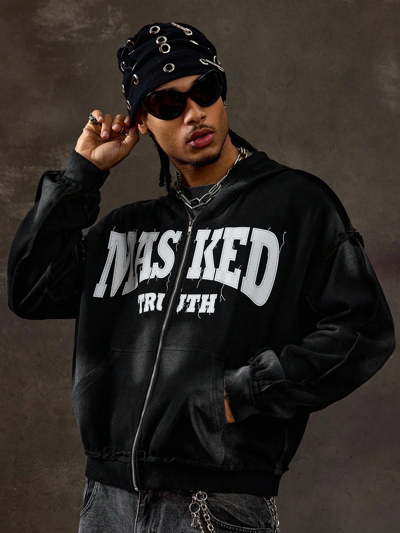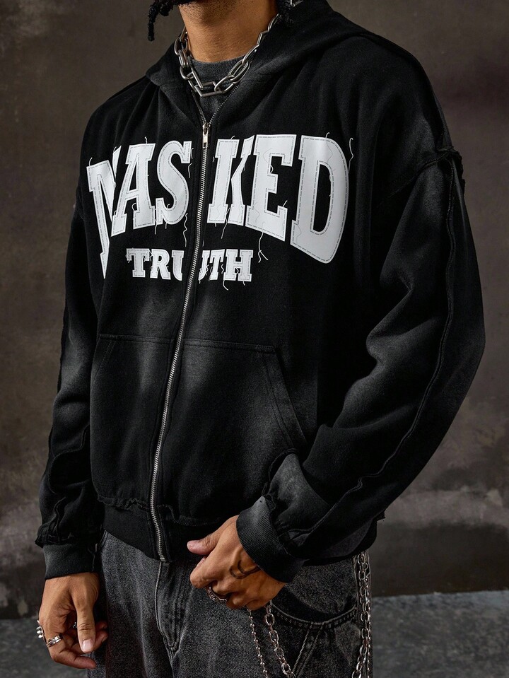 Street Life Men's Distressed Frayed Hem Hooded Sweatshirt, Loose Cropped Fit