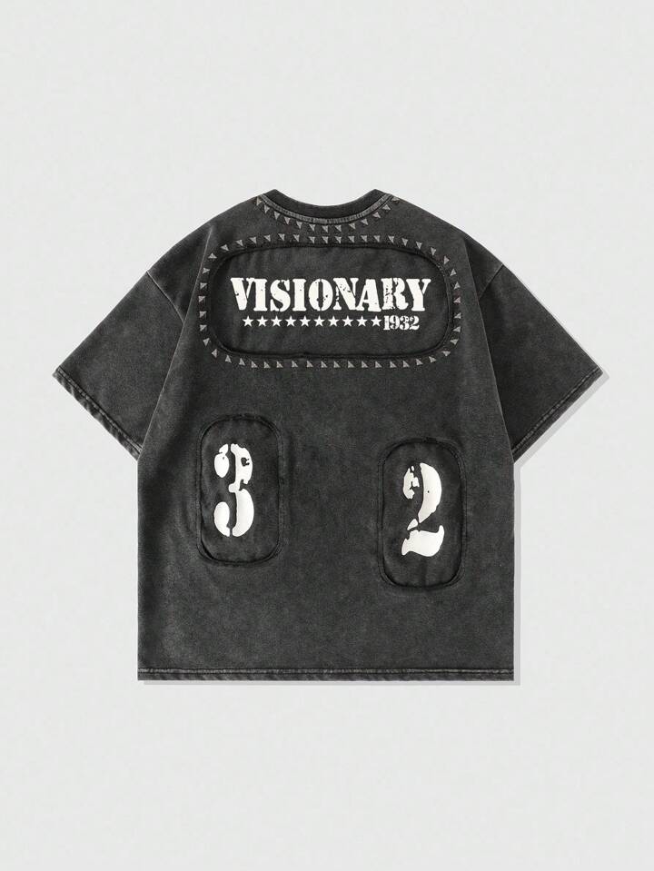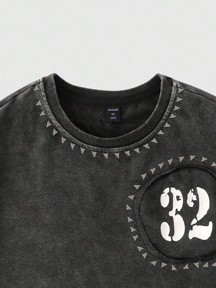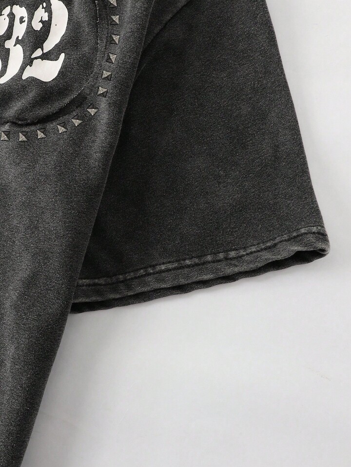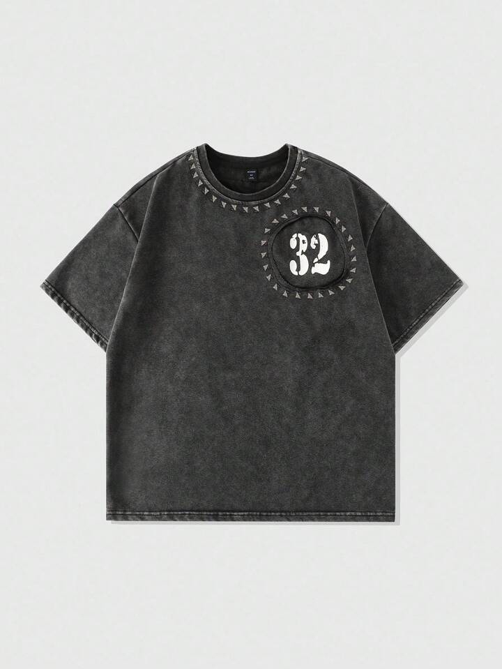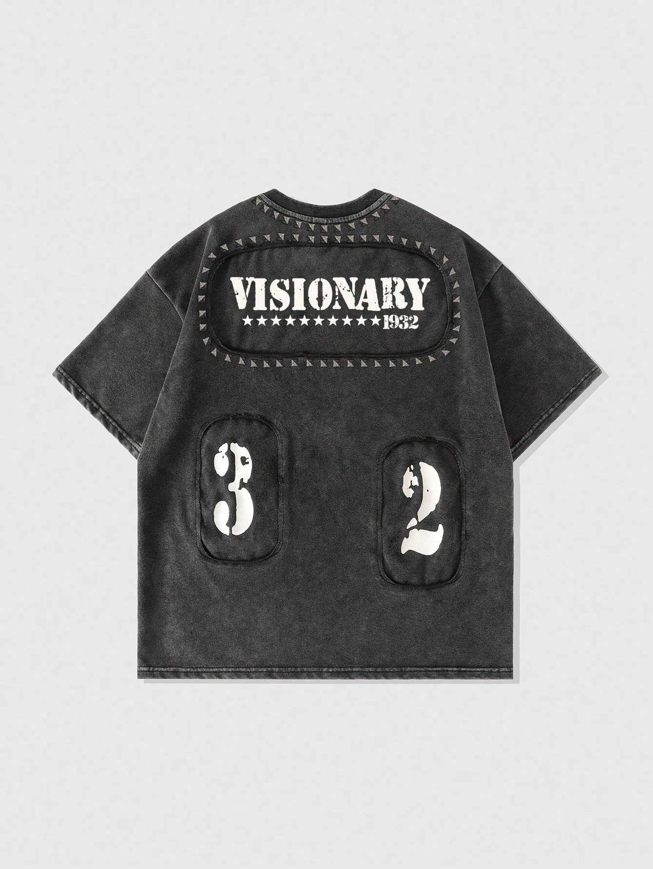 Street Life Men's Distressed Patchwork Rivet Print Washed T-Shirt