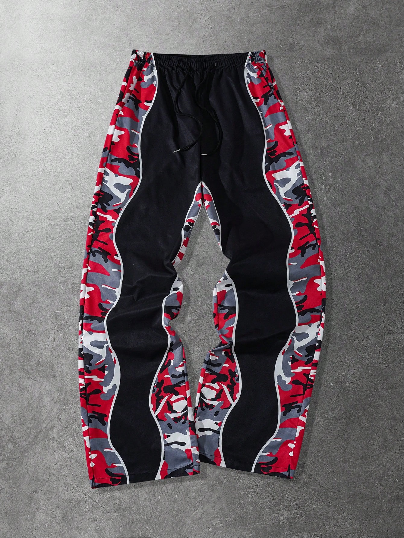 Street Life Men's Drawstring Waist Camouflage Contrast Color Camo Print Casual Pants, All Season
