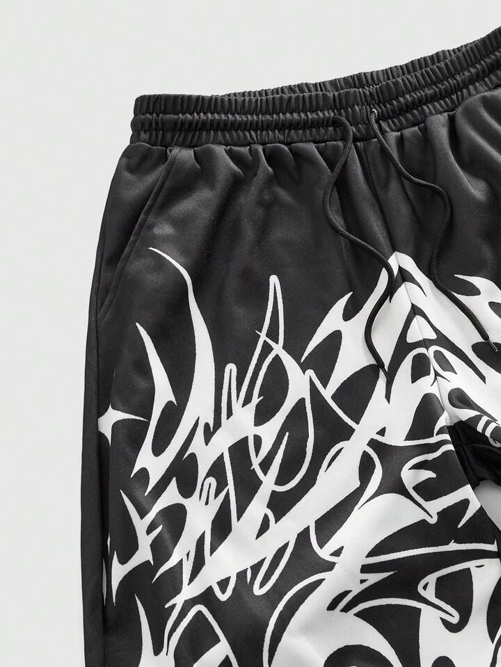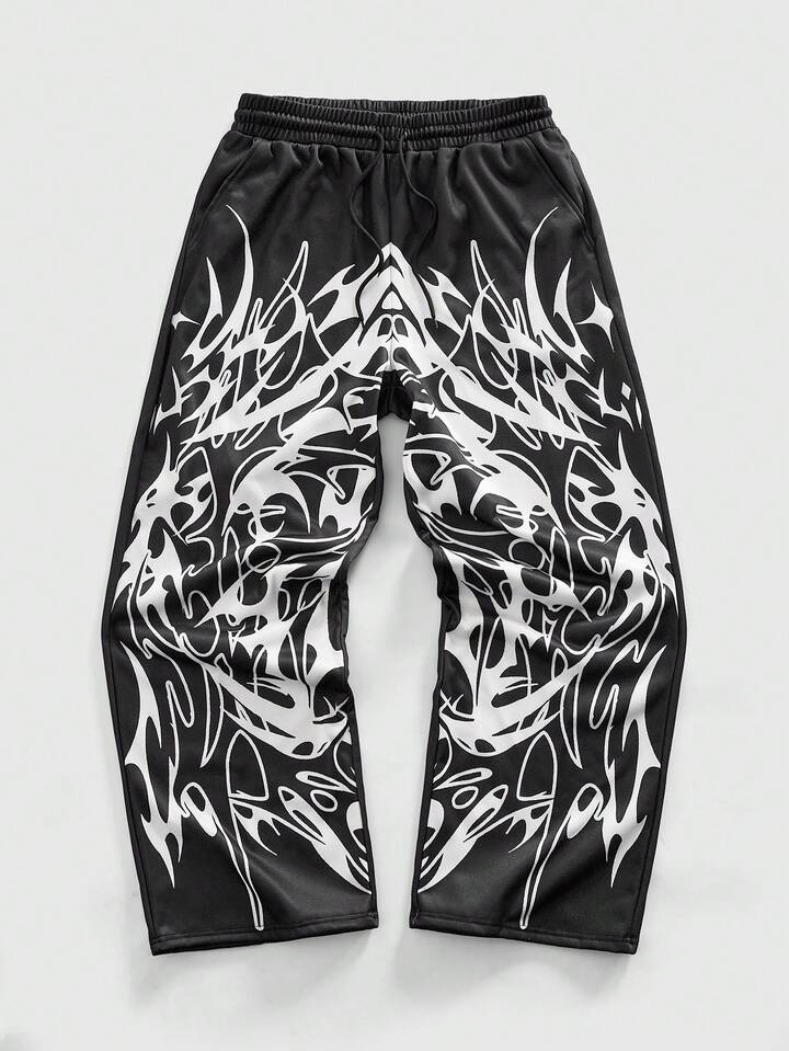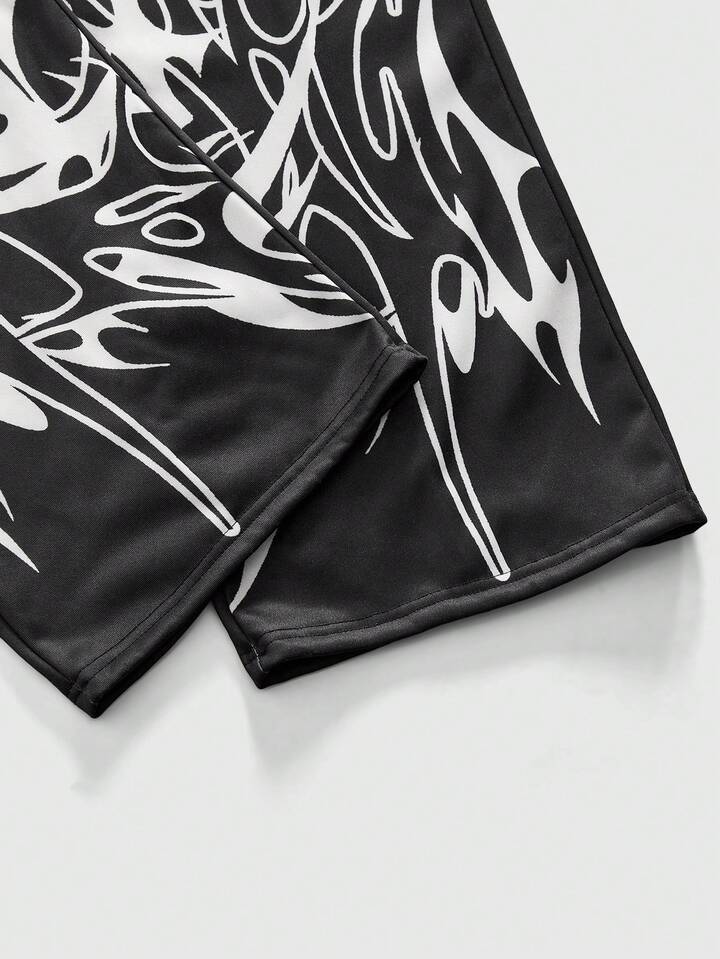 Street Life Men's Fashion Street Oblique Pocket Japanese Anime Thorn Print Pants