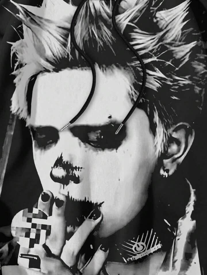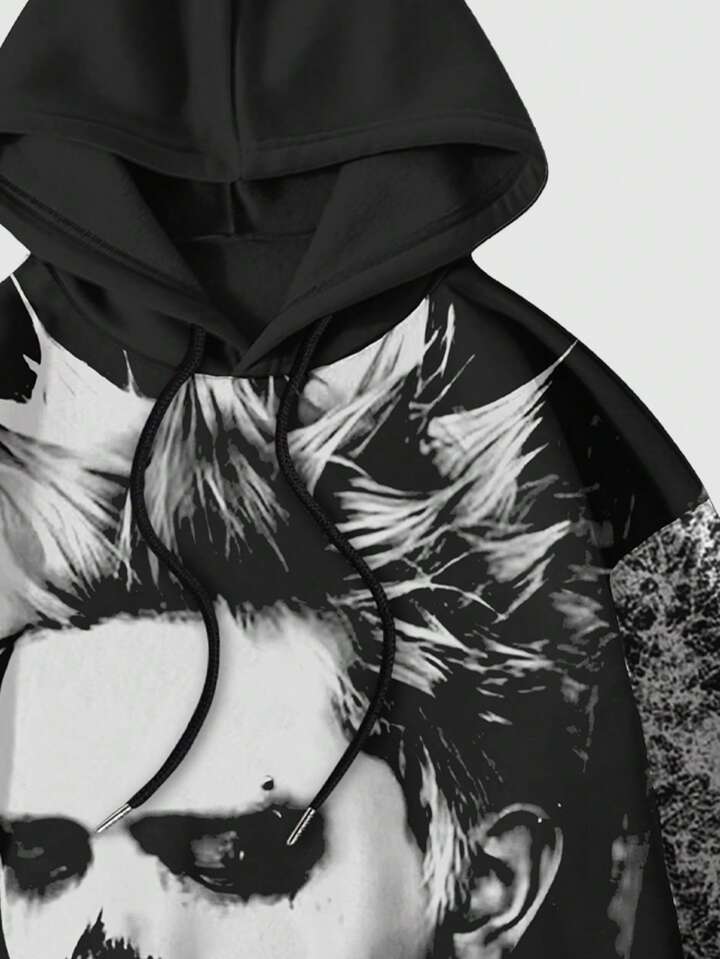 Street Life Men's Fashionable Character Print Drawstring Hooded Fleece Sweatshirt, Autumn Winter