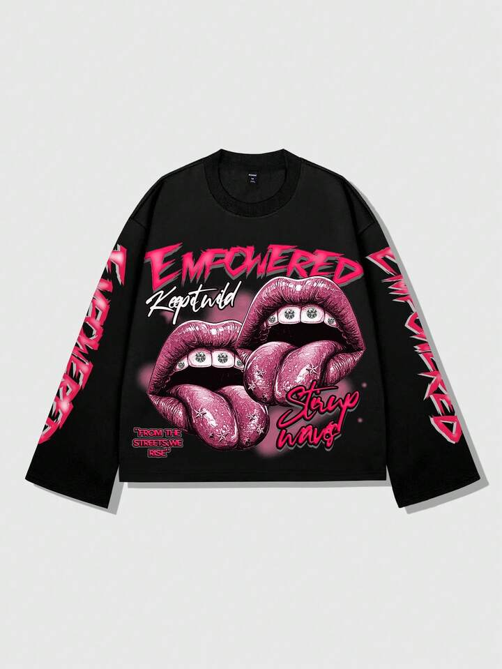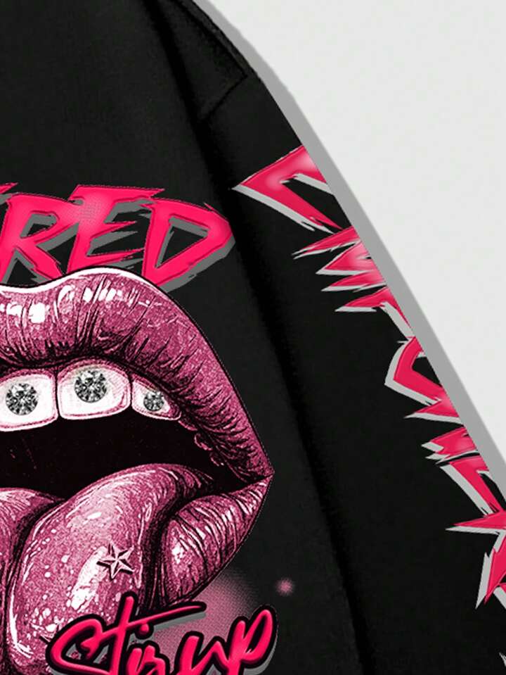 Street Life Men's Fashionable Lip Print Long Sleeve T-Shirt