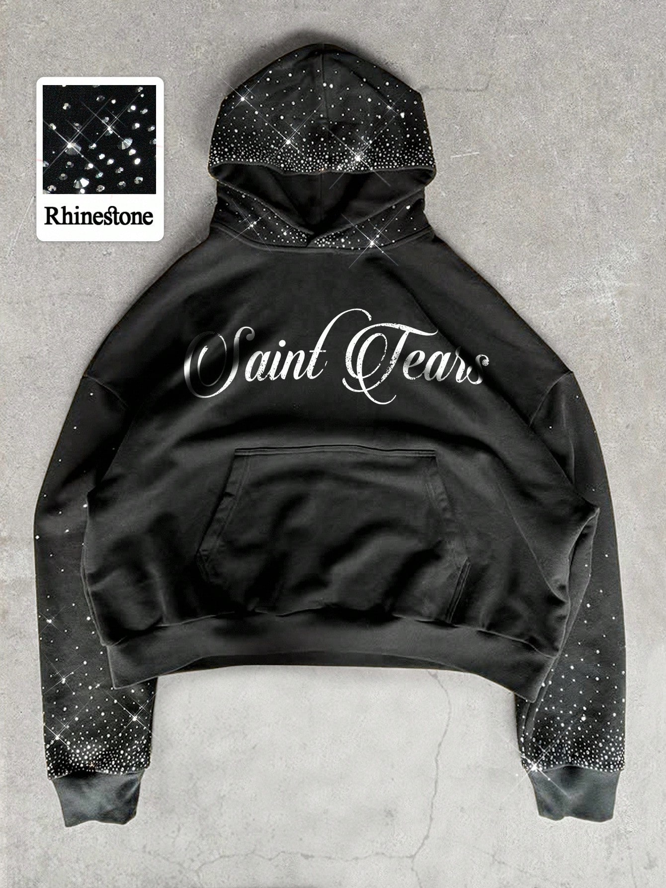 Street Life Men's Fashionable Rhinestone Letter Print Hoodie, Autumn/Winter