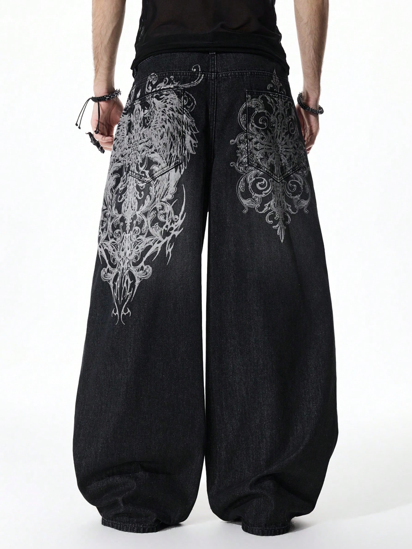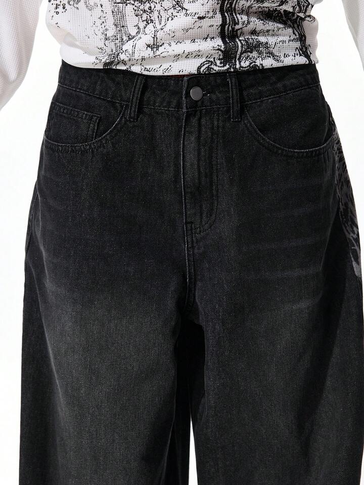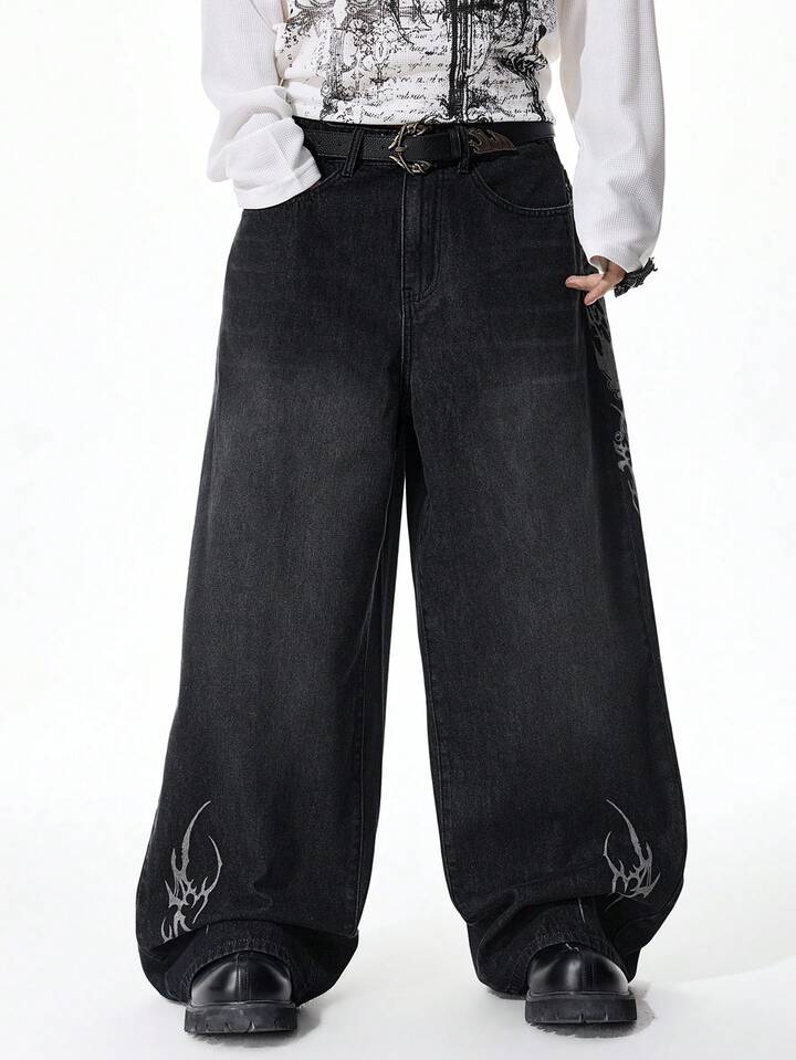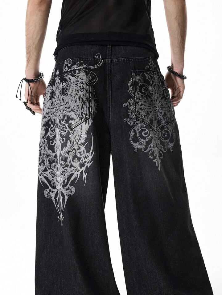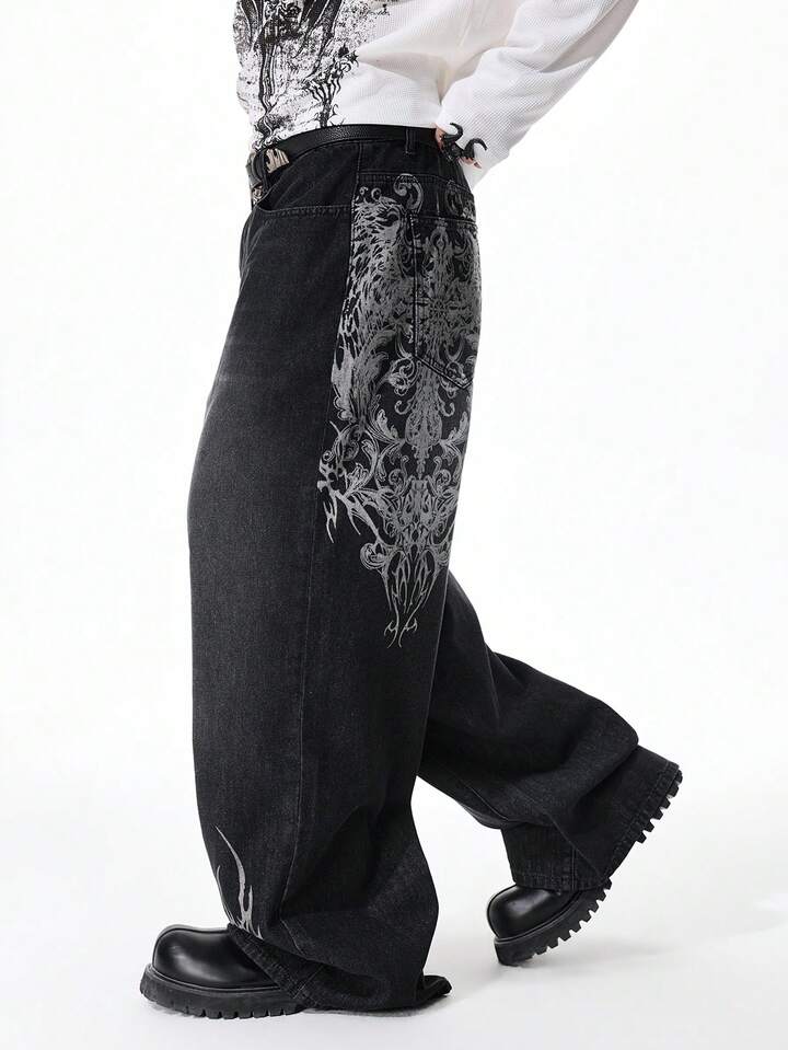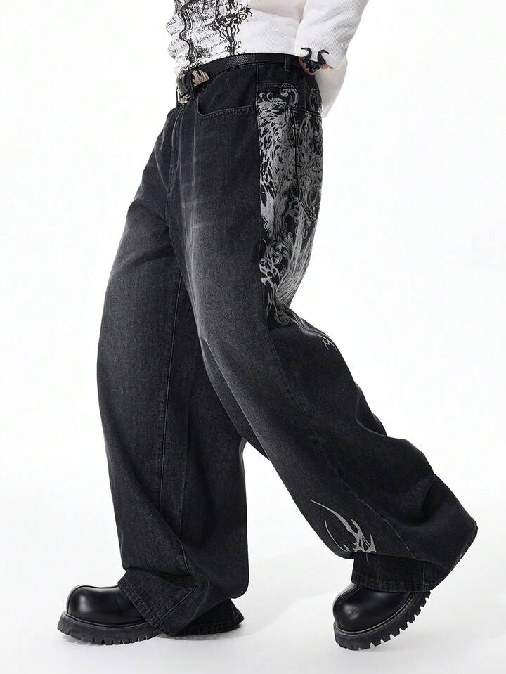 Street Life Men's Fashionable Street Graphic Print Loose Wide-Leg Jeans