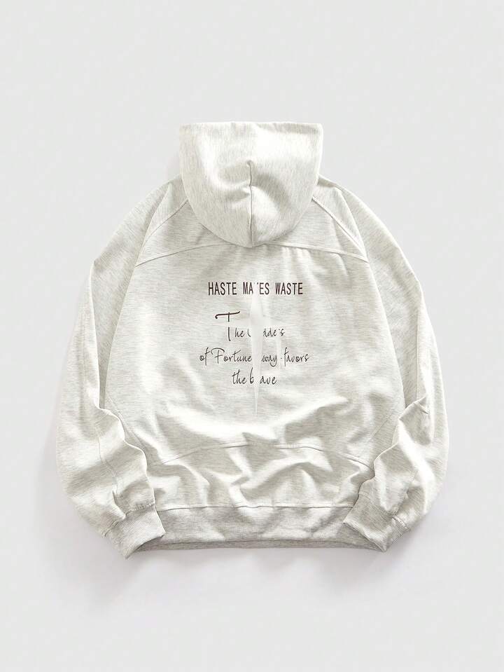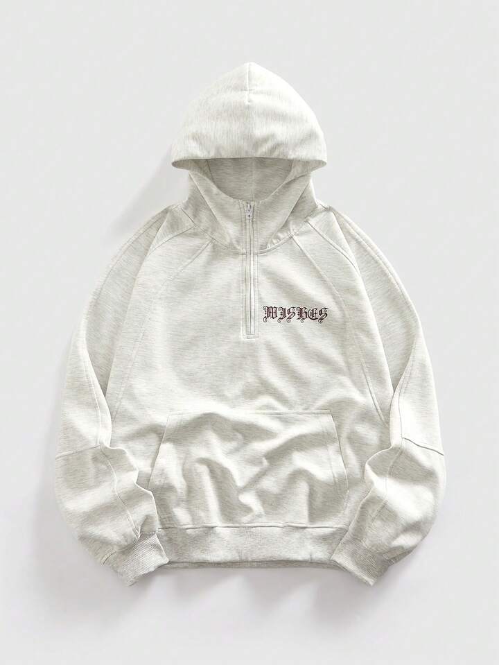 Street Life Men's Fashionable Street Slogan & Star Print Kangaroo Pocket Half-Zip Hoodie Sweatshirt, Spring/Autumn