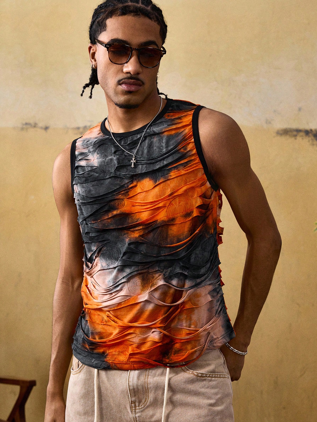 Street Life Men's Fashionable Tie-Dye Distressed Design Tank Top, Summer