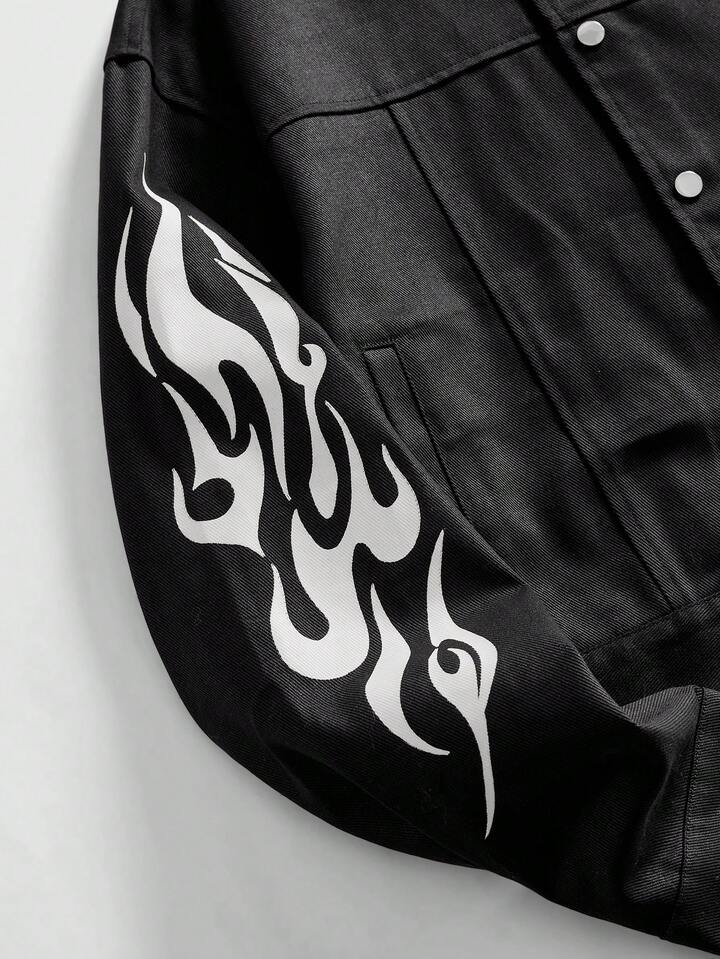 Street Life Men's Flame Pattern Long Sleeve Single-Breasted Casual Loose Jacket