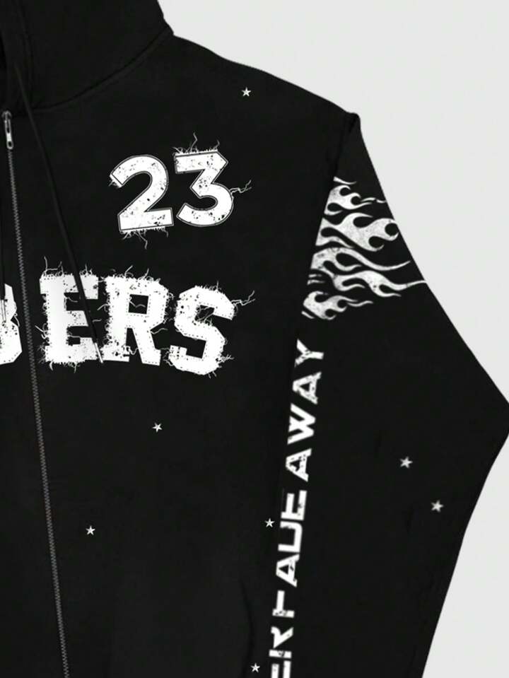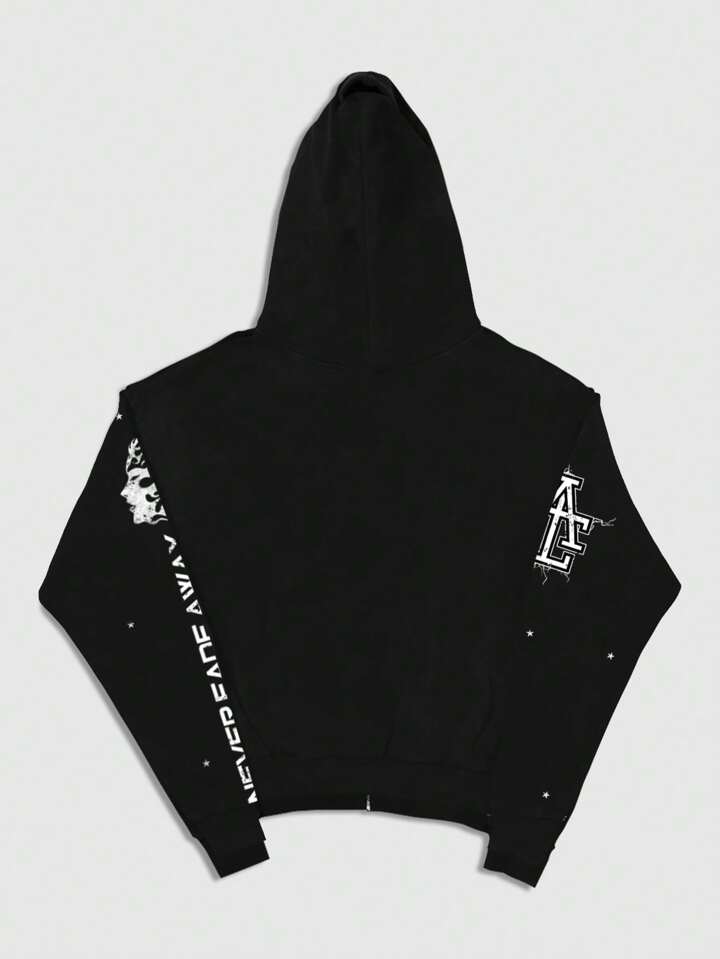 Street Life Men's Front Zip Letter Graphic Minimalist Casual Hoodie Sweatshirt