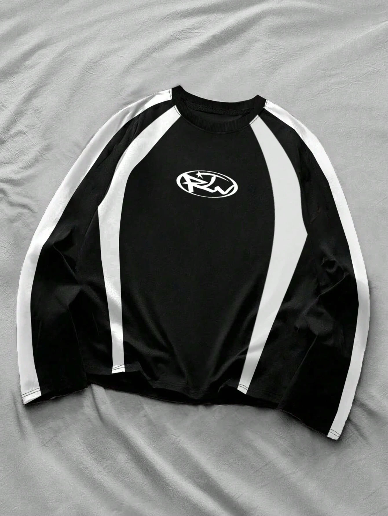 Street Life Men's Geometric Print Contrast Color Round Neck Long Sleeve Casual T-Shirt