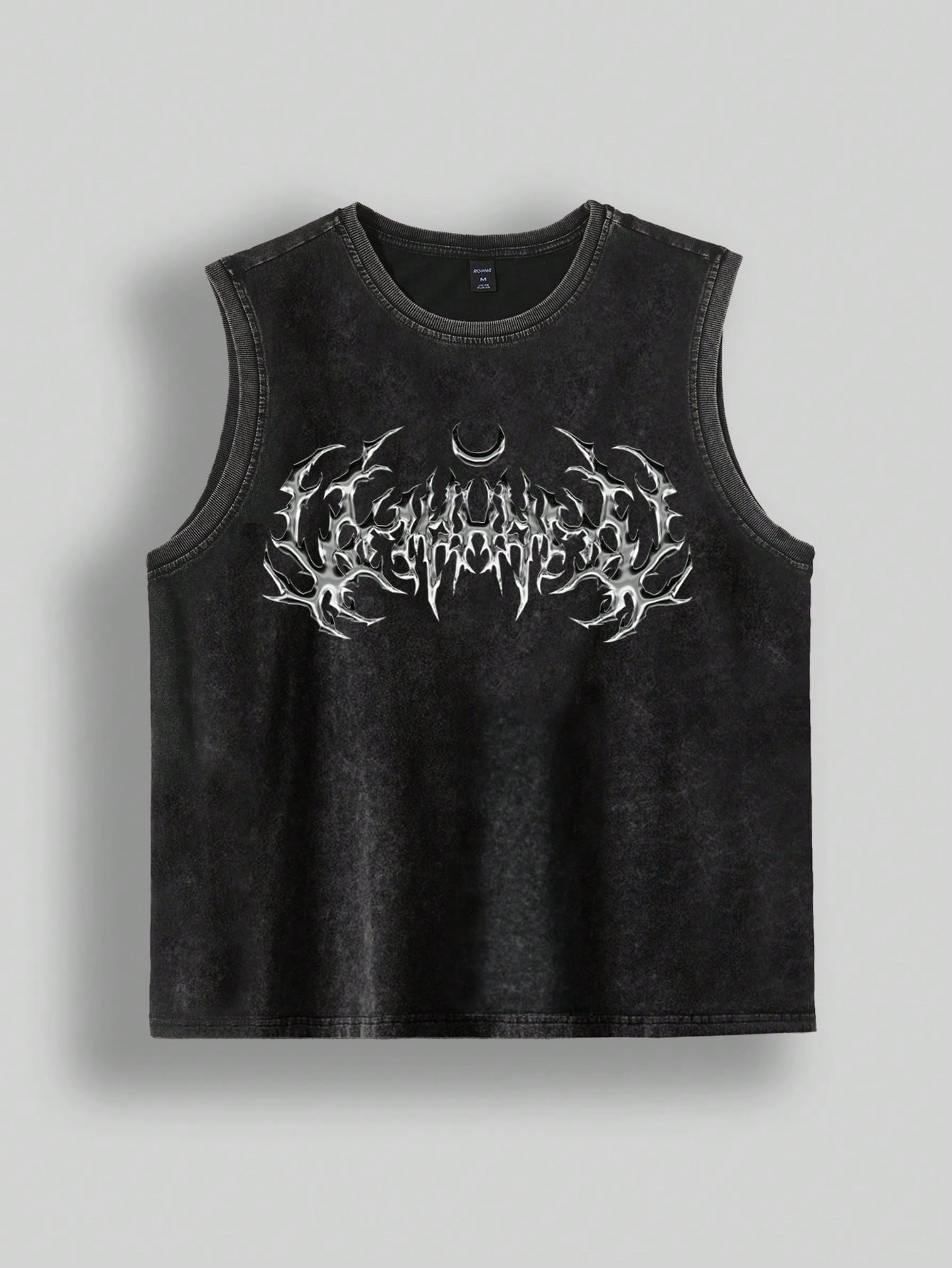 Street Life Men's Goth Dark Color Bat Print Sleeveless Tank Top For Summer