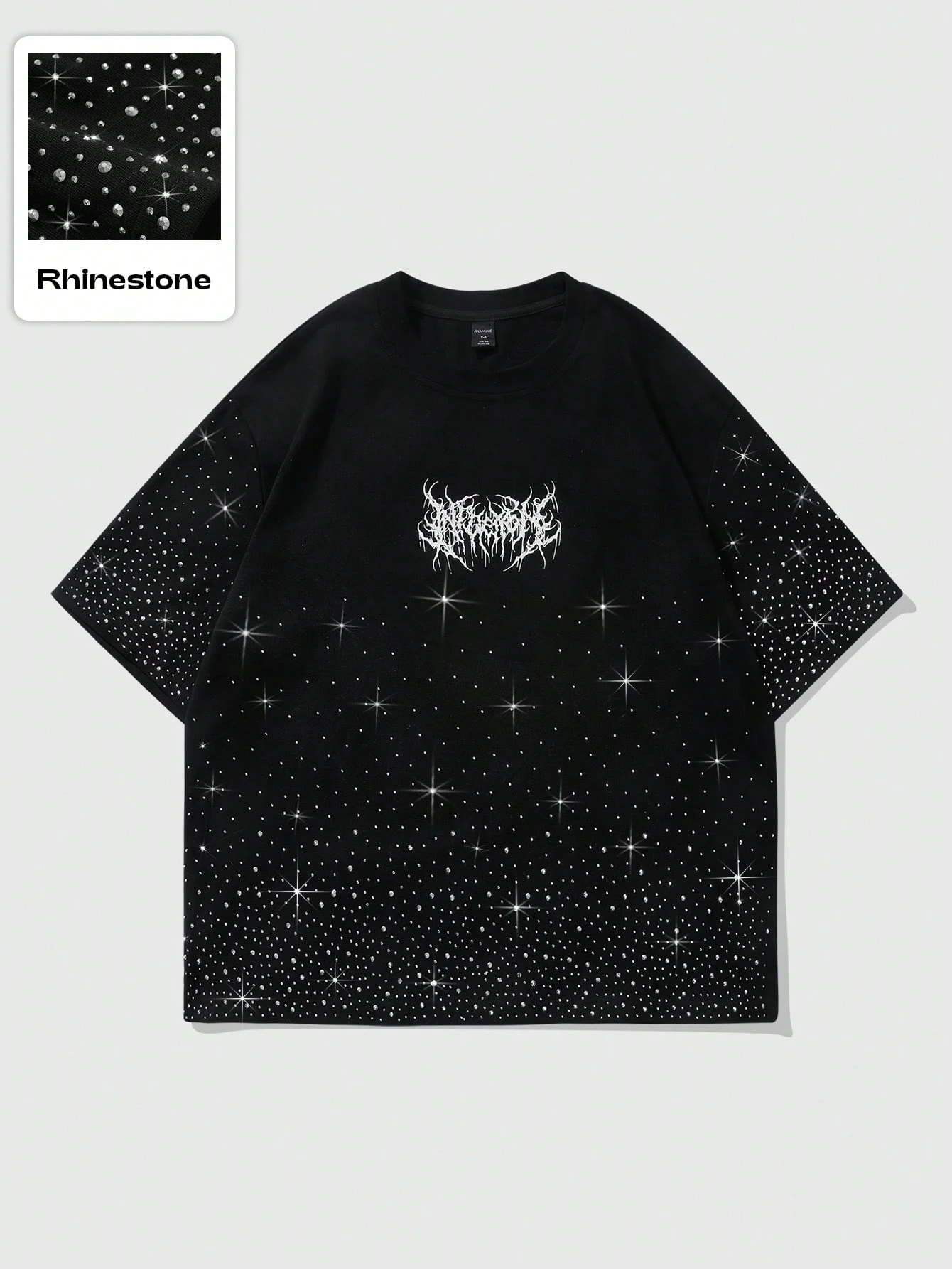 Street Life Men's Goth Short Sleeve T-Shirt & Shorts Set, Street Style English Graphic & Studded Print, Black, Rave, Halloween