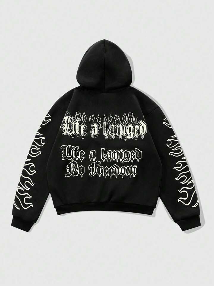 Street Life Men's Gothic Print Thermal Lined Hoodie, Suitable For Everyday Wear In Autumn/Winter