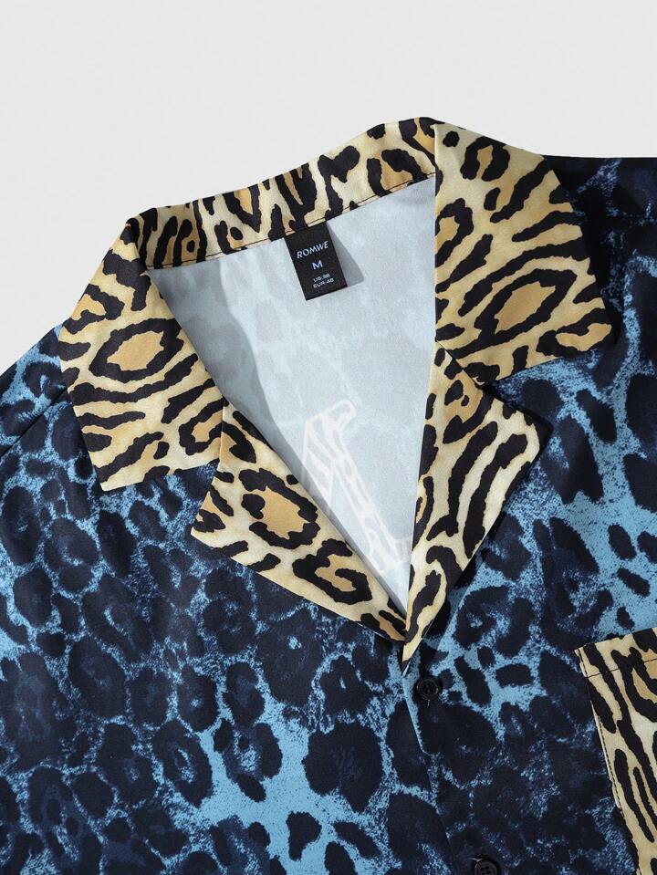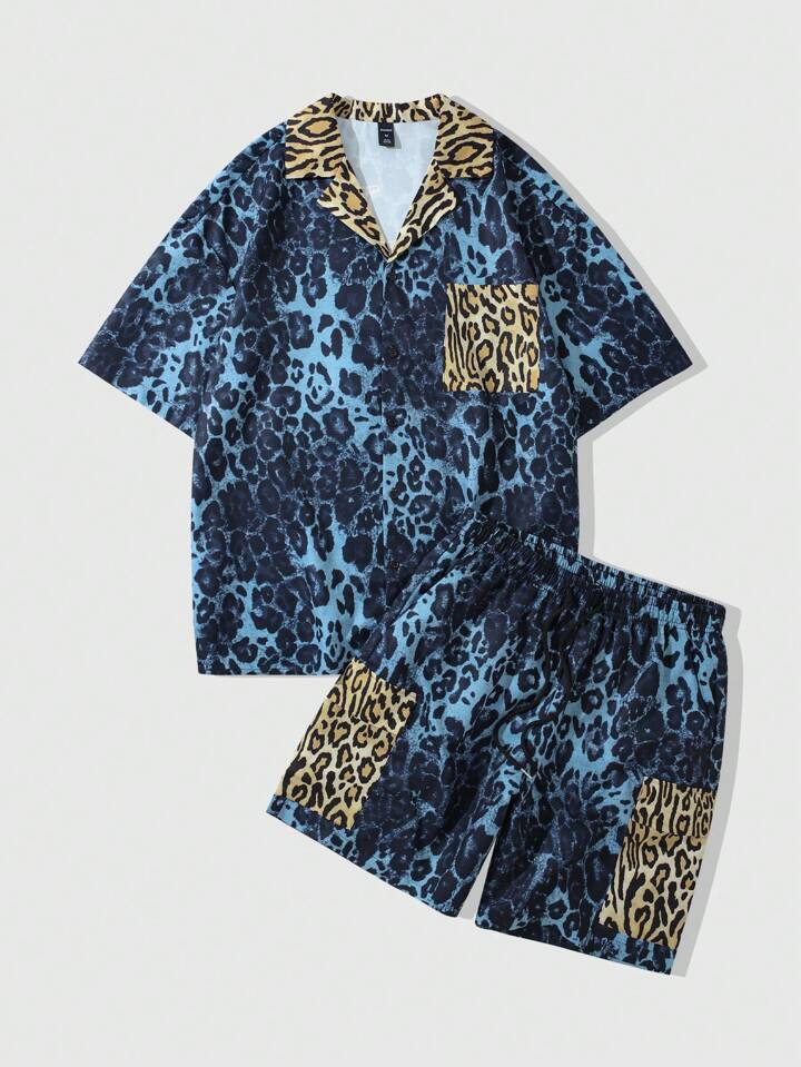 Street Life Men's Grunge Casual Leopard Print Short Sleeve Shirt & Shorts Set