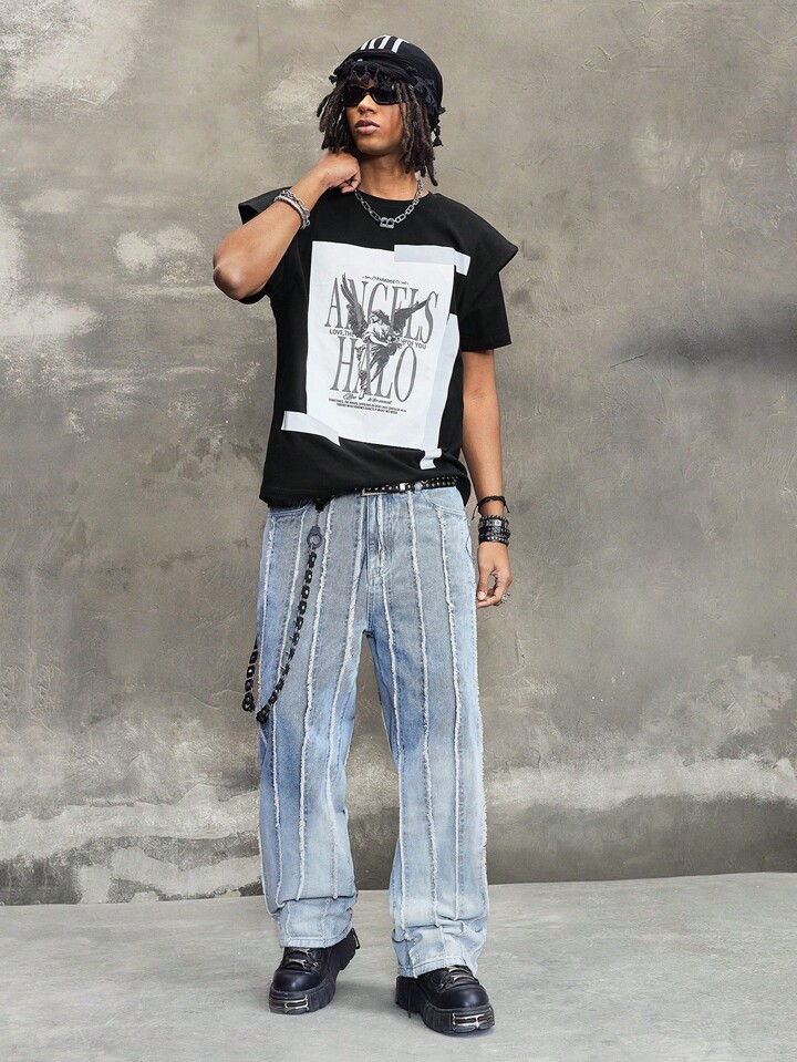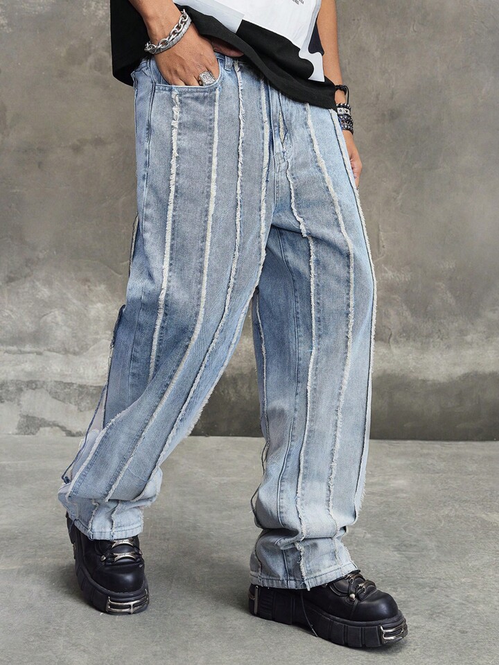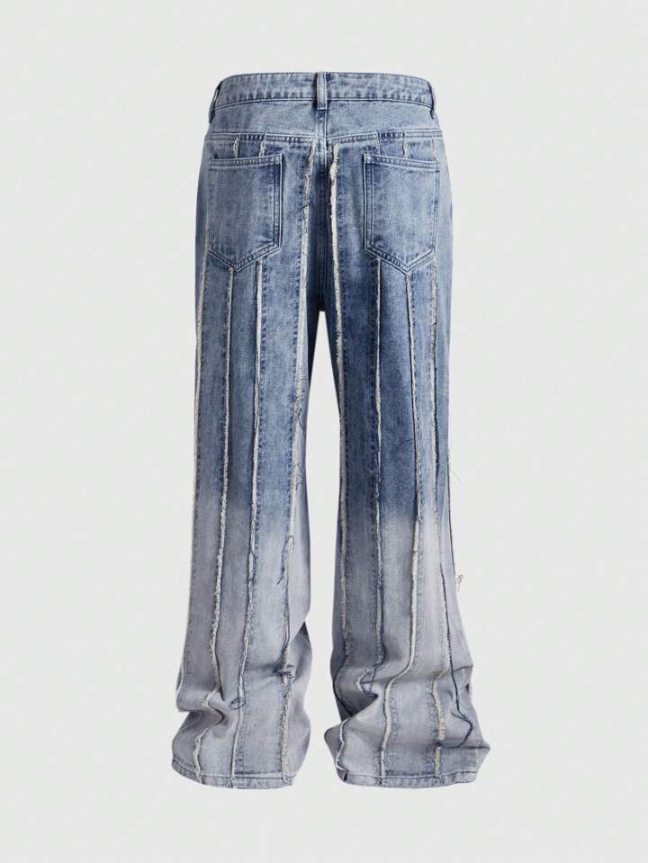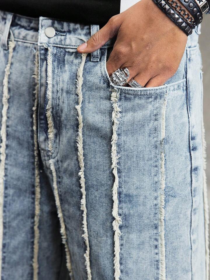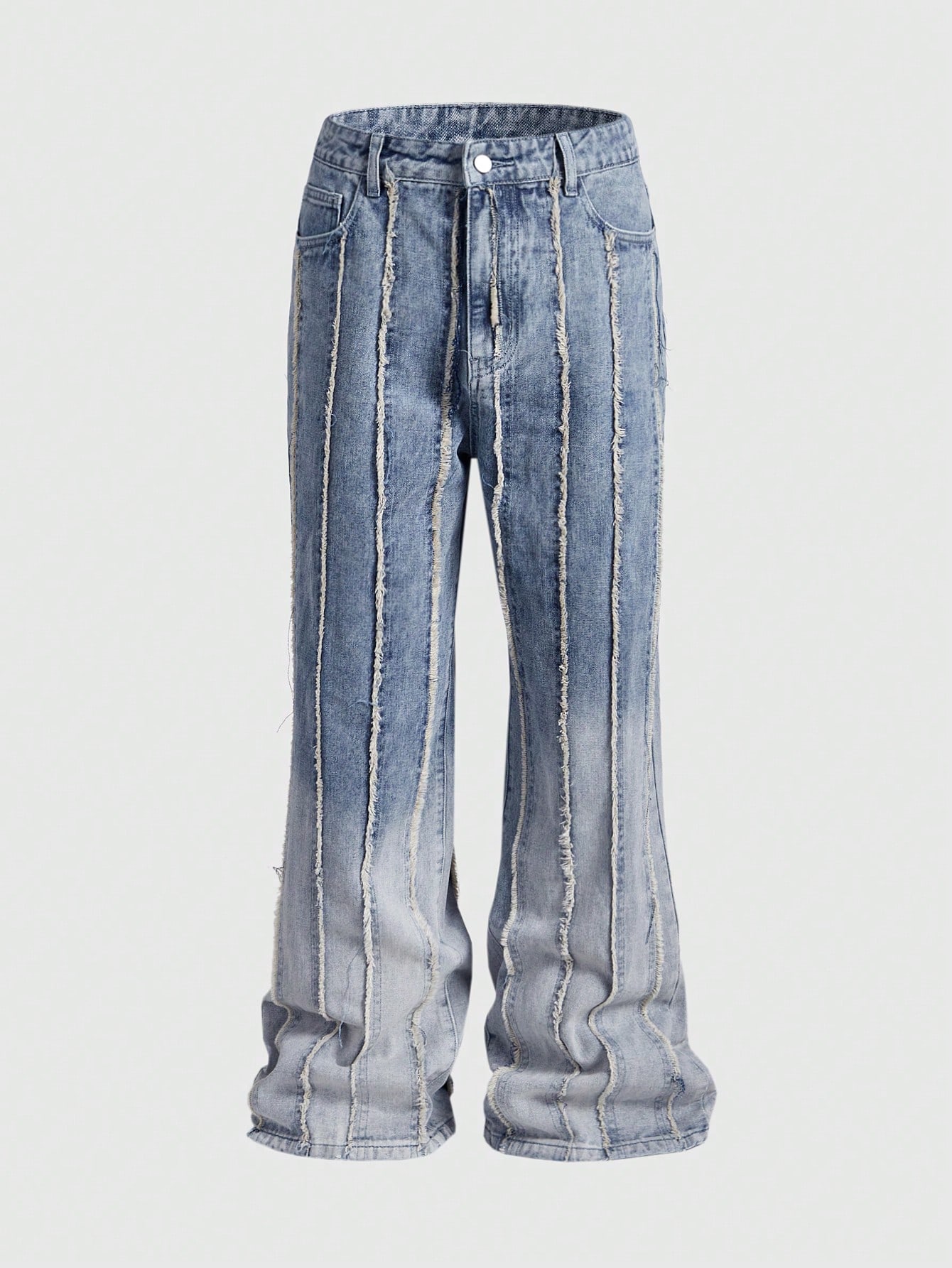 Street Life Men's Grunge Pocket Frayed Hem Bell-Bottoms Casual Versatile Jeans