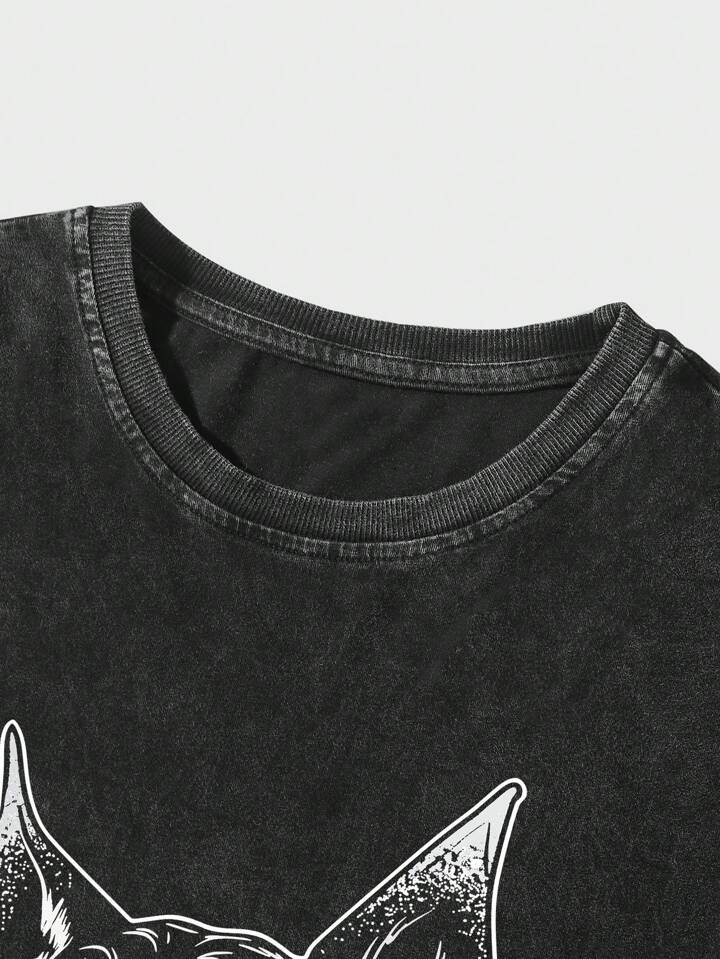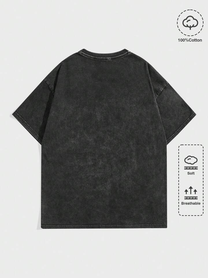 Street Life Men's High Street Vintage Distressed Acid-Washed Round Neck T-Shirt Suitable For Casual And Daily Wear In Spring And Summer, School