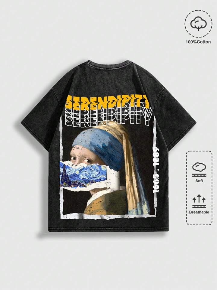 Street Life Men's Holiday Floral Print Acid-Washed Vintage Short Sleeve T-Shirt, Suitable For Daily Wear In Spring/Summer