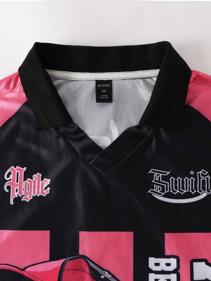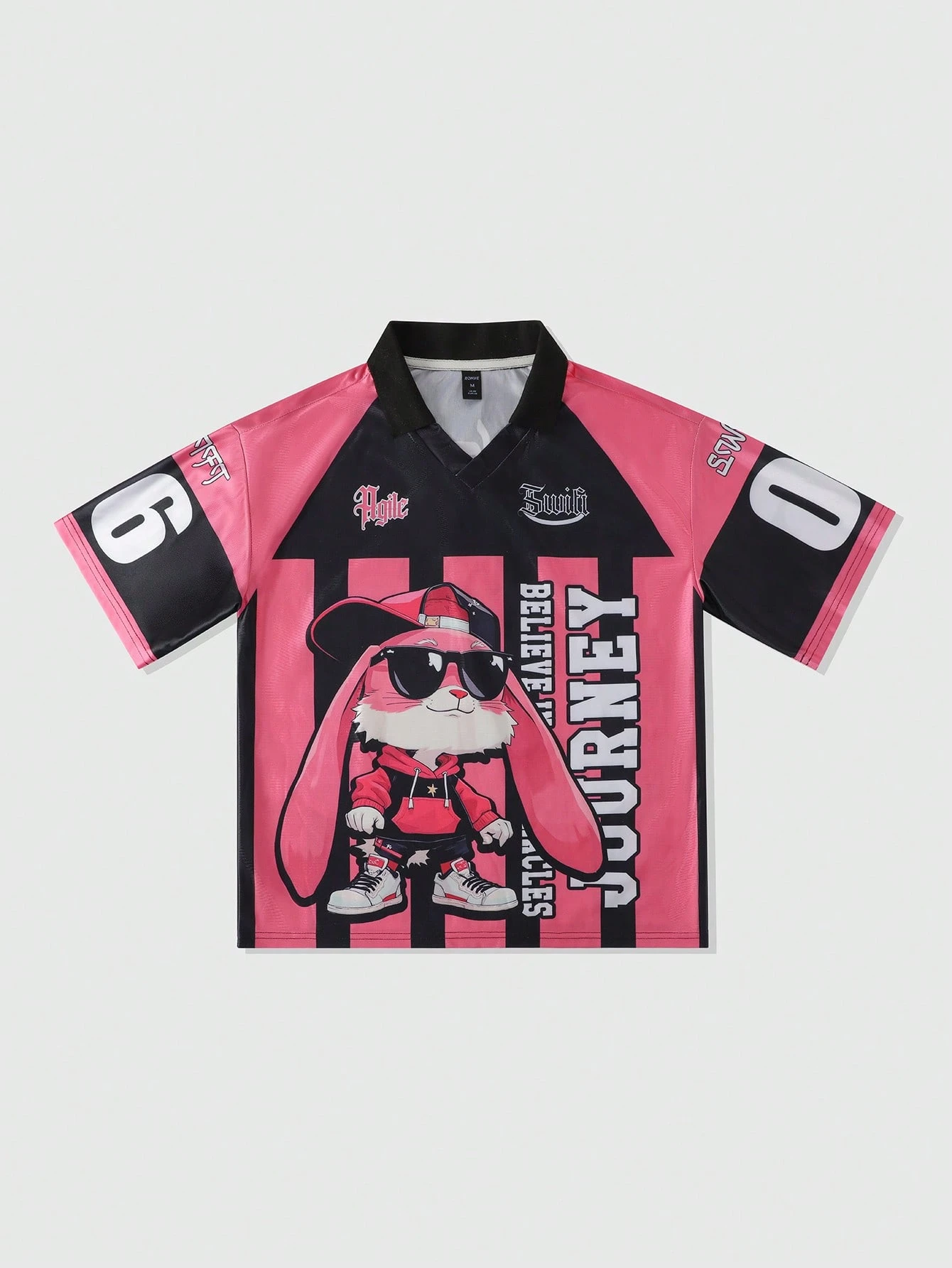 Street Life Men's Jersey Casual Contrast Color Cartoon Printed Polo Shirt, Summer