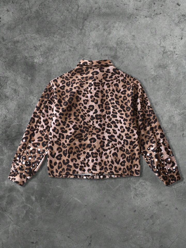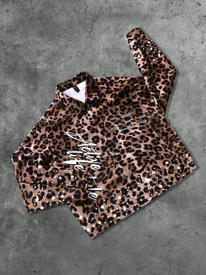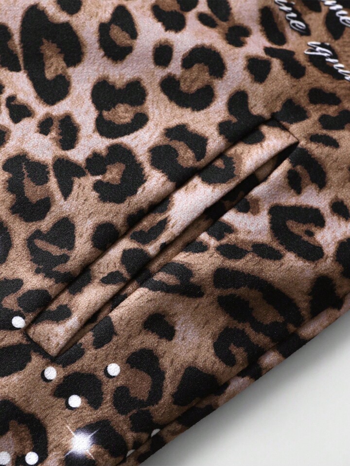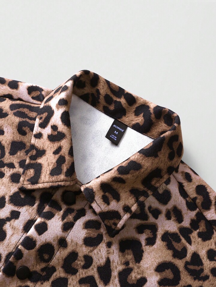 Street Life Men's Leopard Print & English Text Graphic Thermal Lined Street Style Jacket, Autumn/Winter