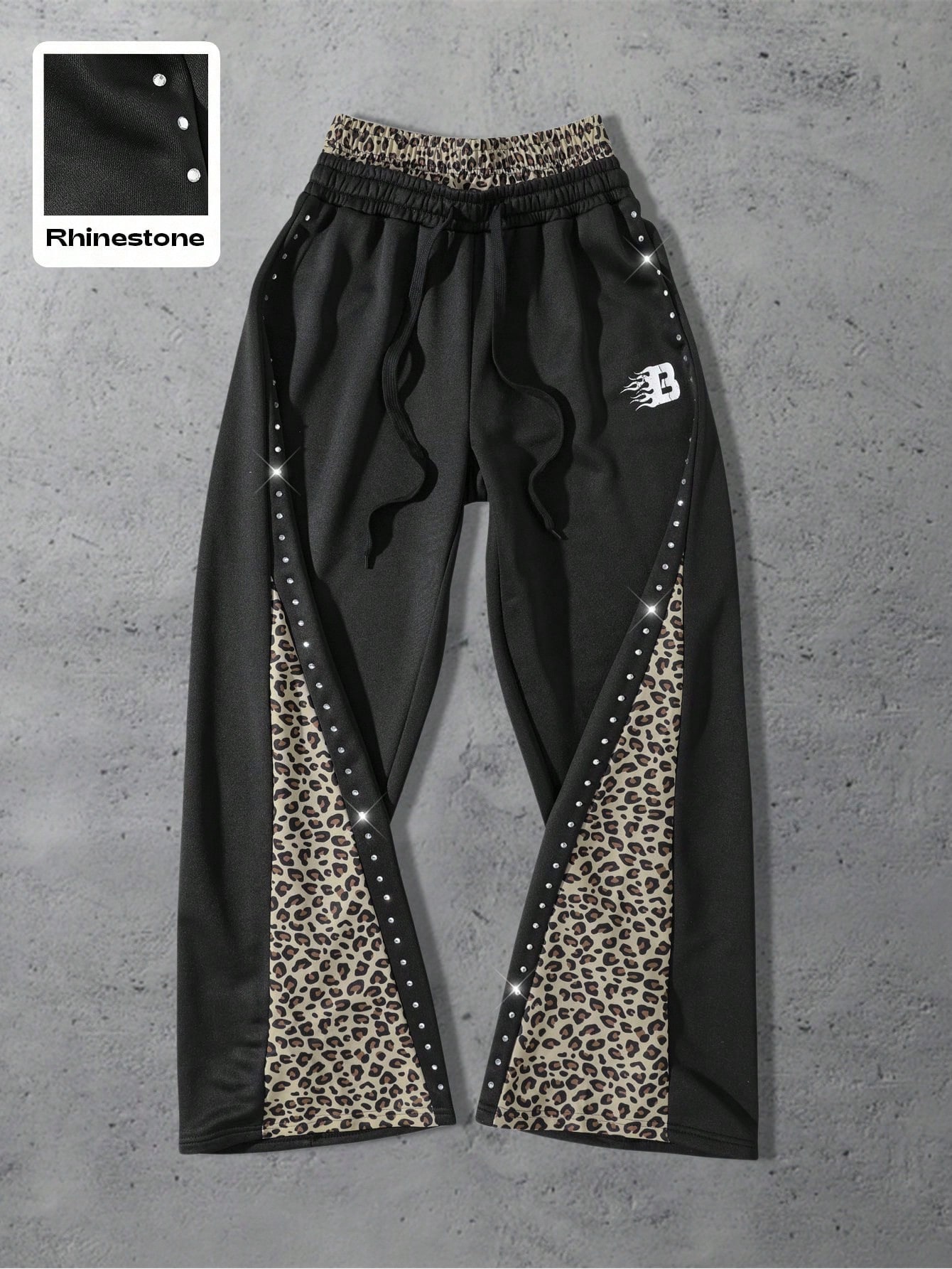 Street Life Men's Leopard Print Patchwork Waistband Sweatpants, Loose Fit