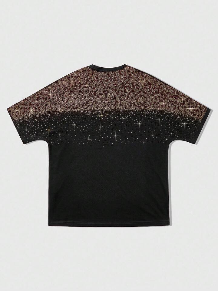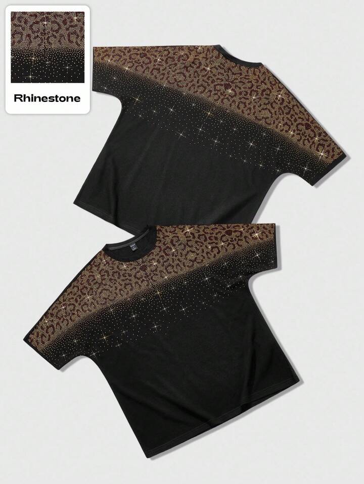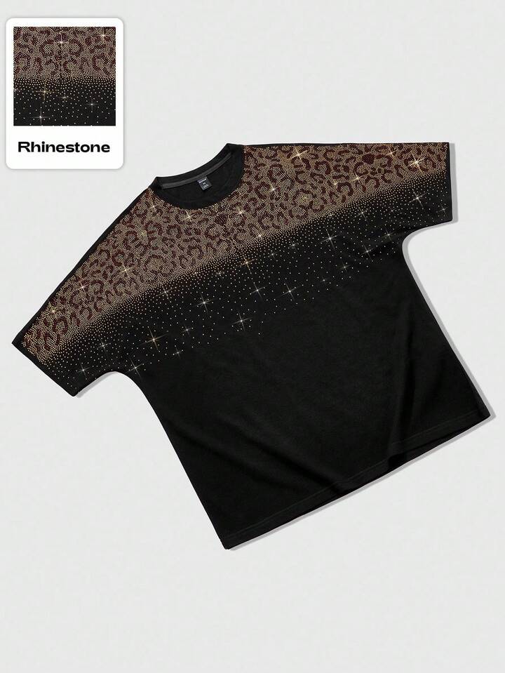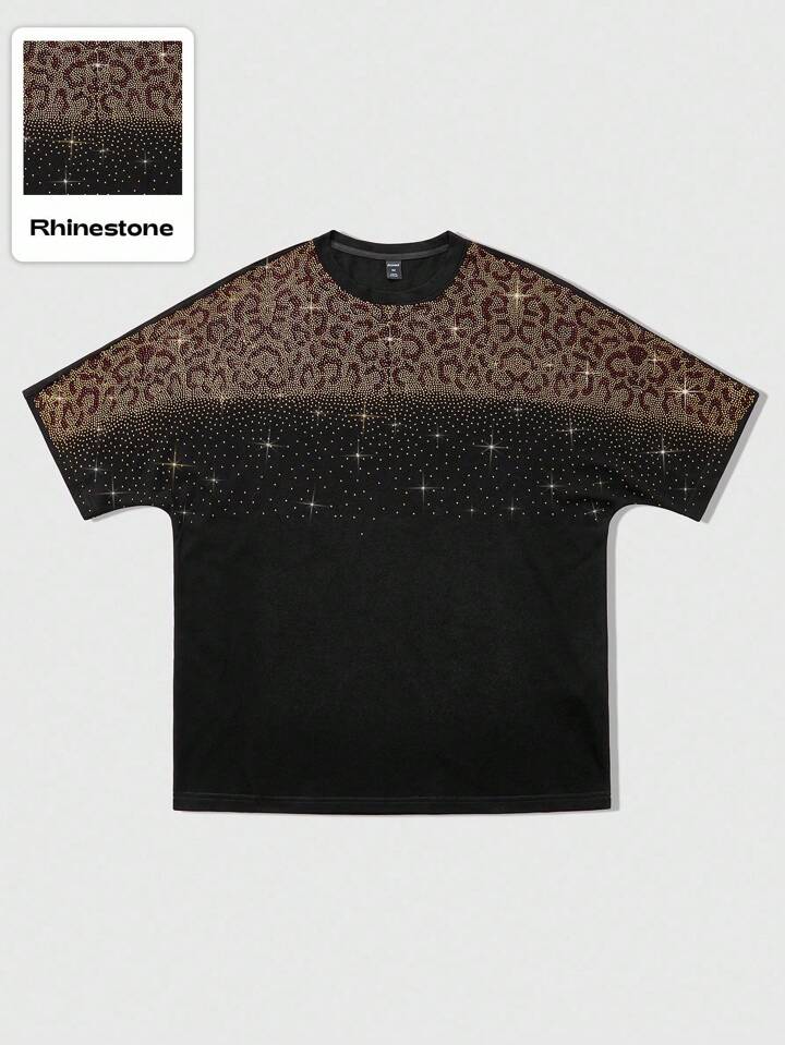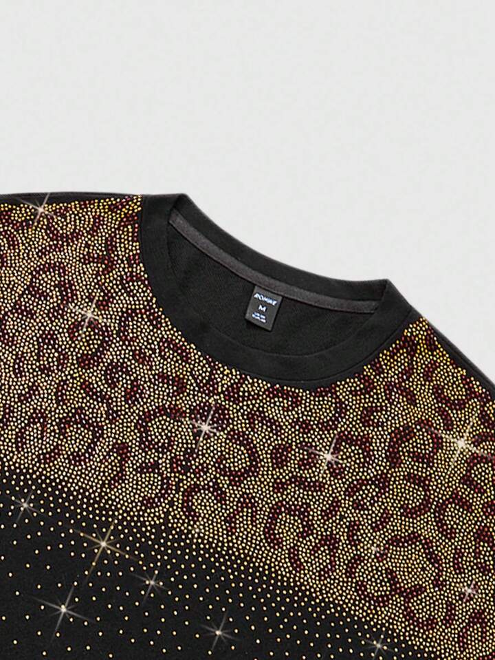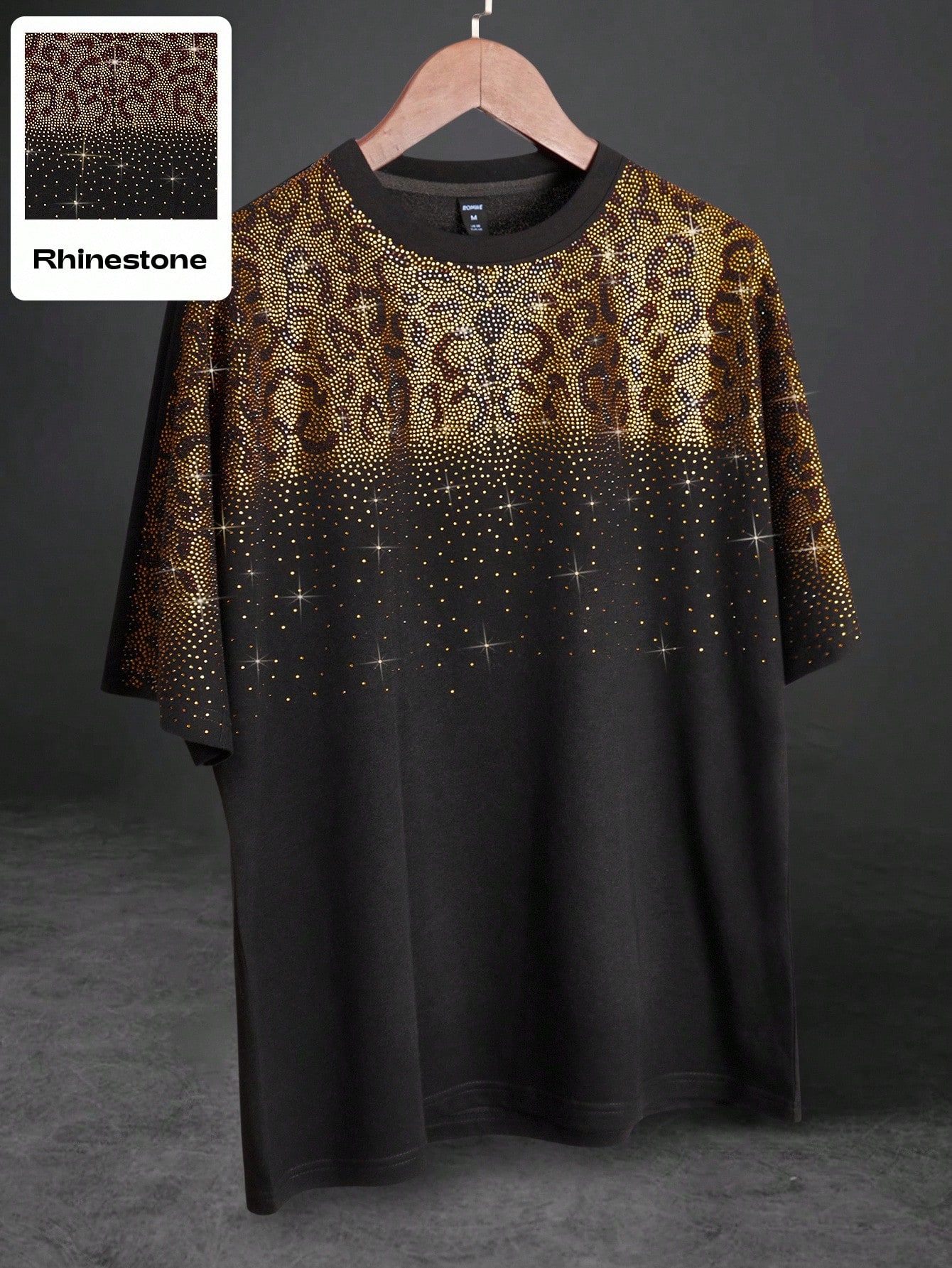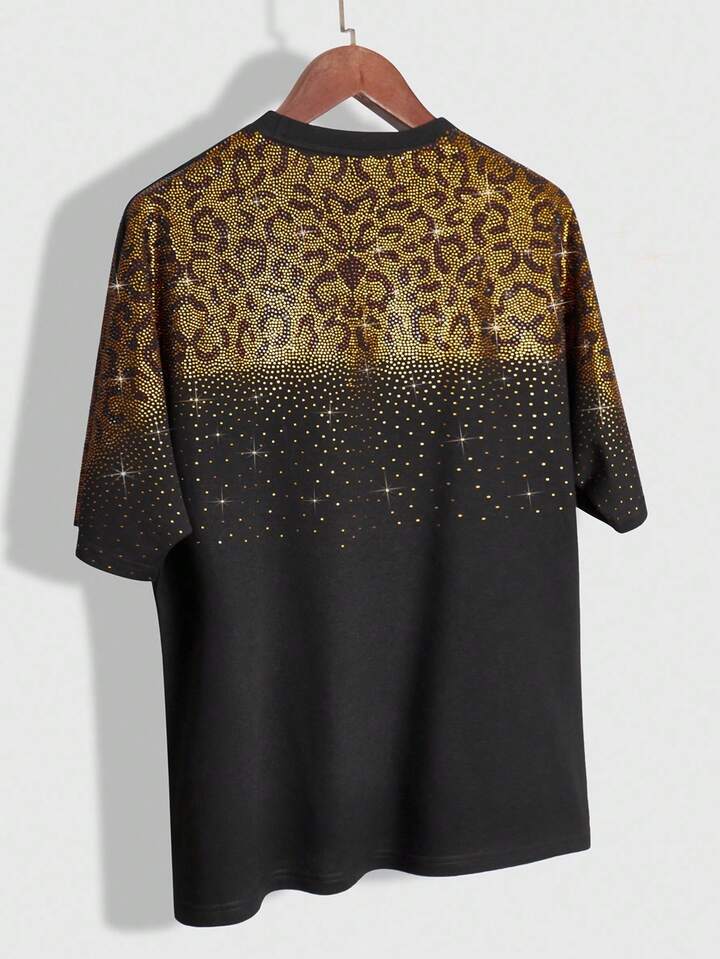 Street Life Men's Leopard Print Rhinestone Decor Short Sleeve T-Shirt