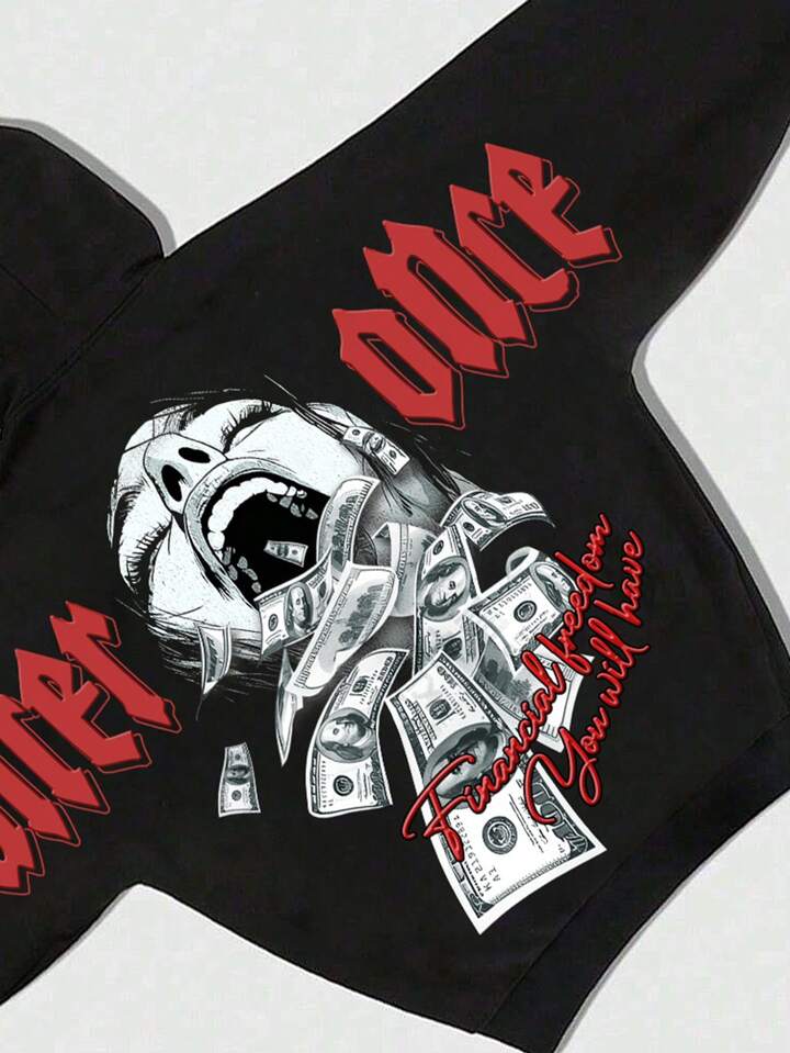 Street Life Men's Letter & Character Print Zip-Up Hoodie, Casual Streetwear
